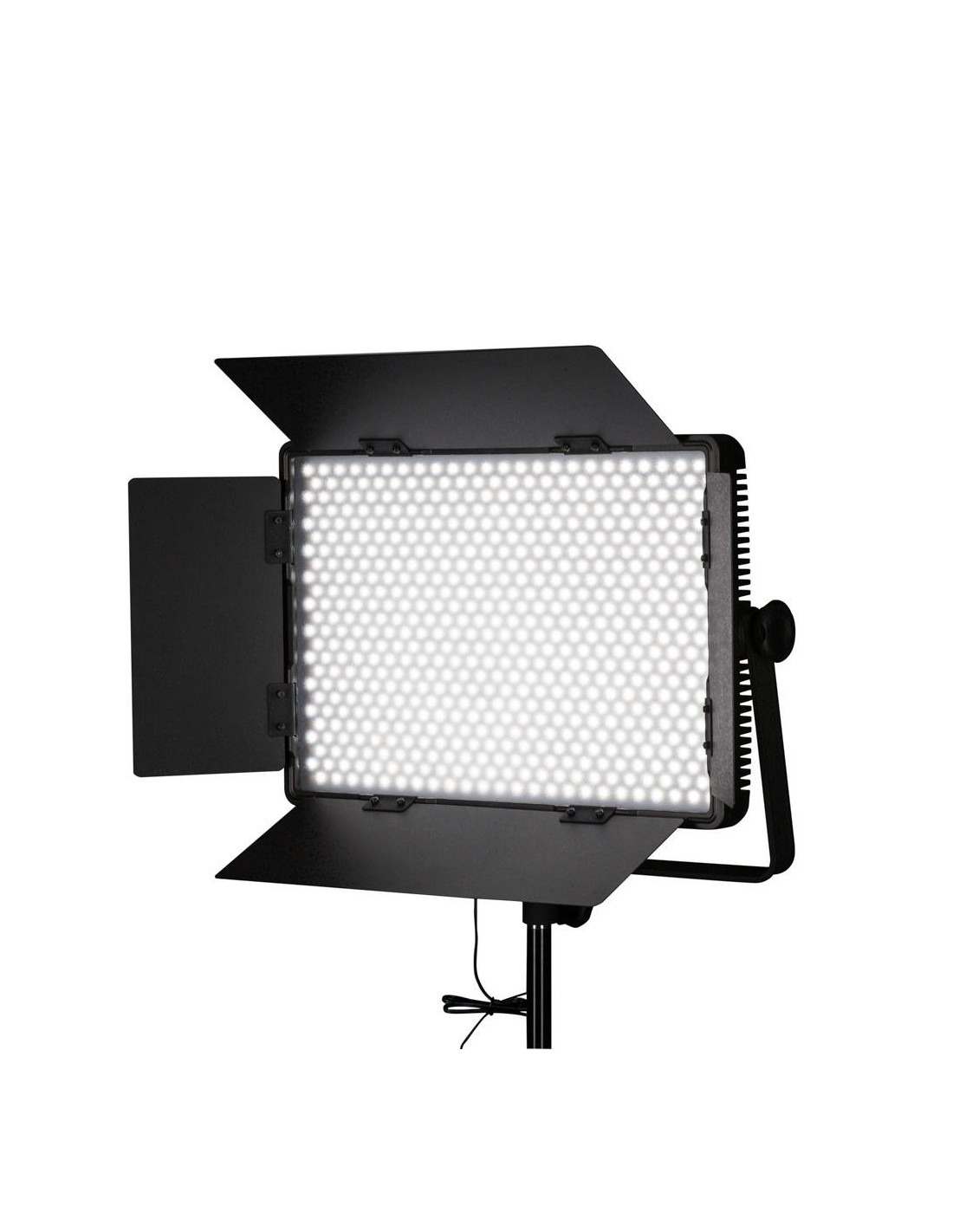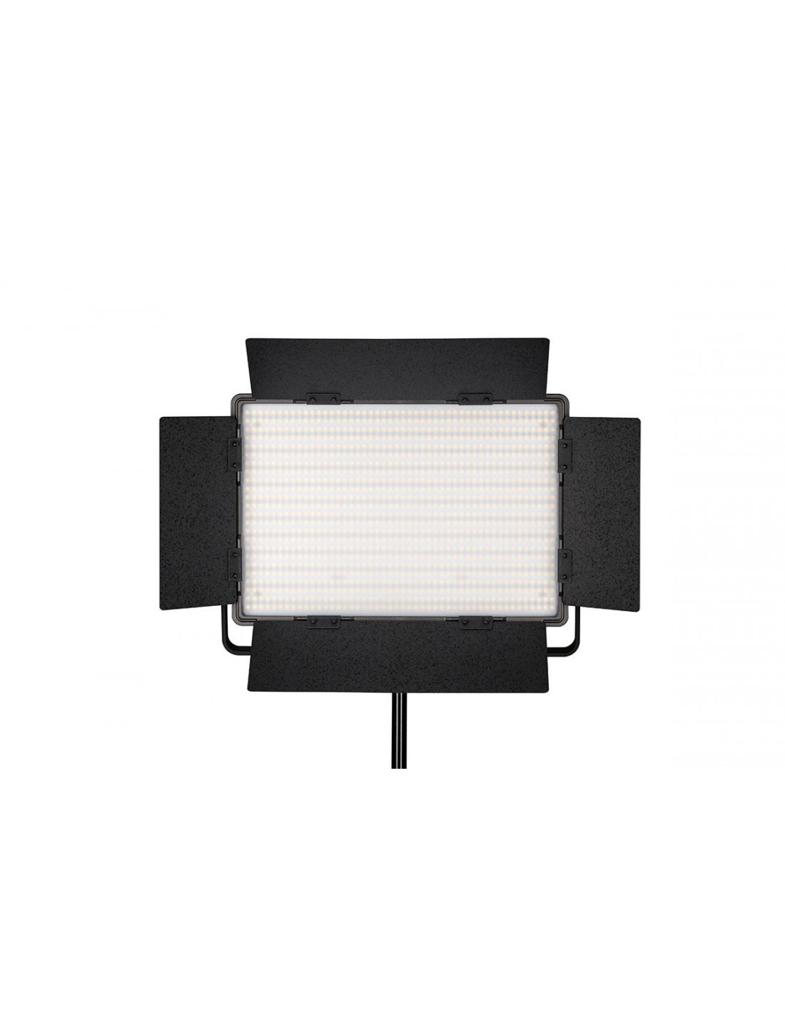 Con índice de reproducción cromática de CRI 95, que lo acerca a la perfección a la hora de lograr colores precisos y naturales. Incorpora dimmer para un control continuo de potencia a través de pantalla LCD, control DMX, e integra receptor WiFi 2.4G, lo que permite su control en remoto, ya sea por mando a distancia o por la app Nanguang WiFi led lighting controller con un smartphone iPhone (necesario el transmisor NanGuang WiFi Control Box). Además, su brazo en forma de U facilita el giro del panel en cualquier ángulo, permitiendo su colocación en soportes de techo.
