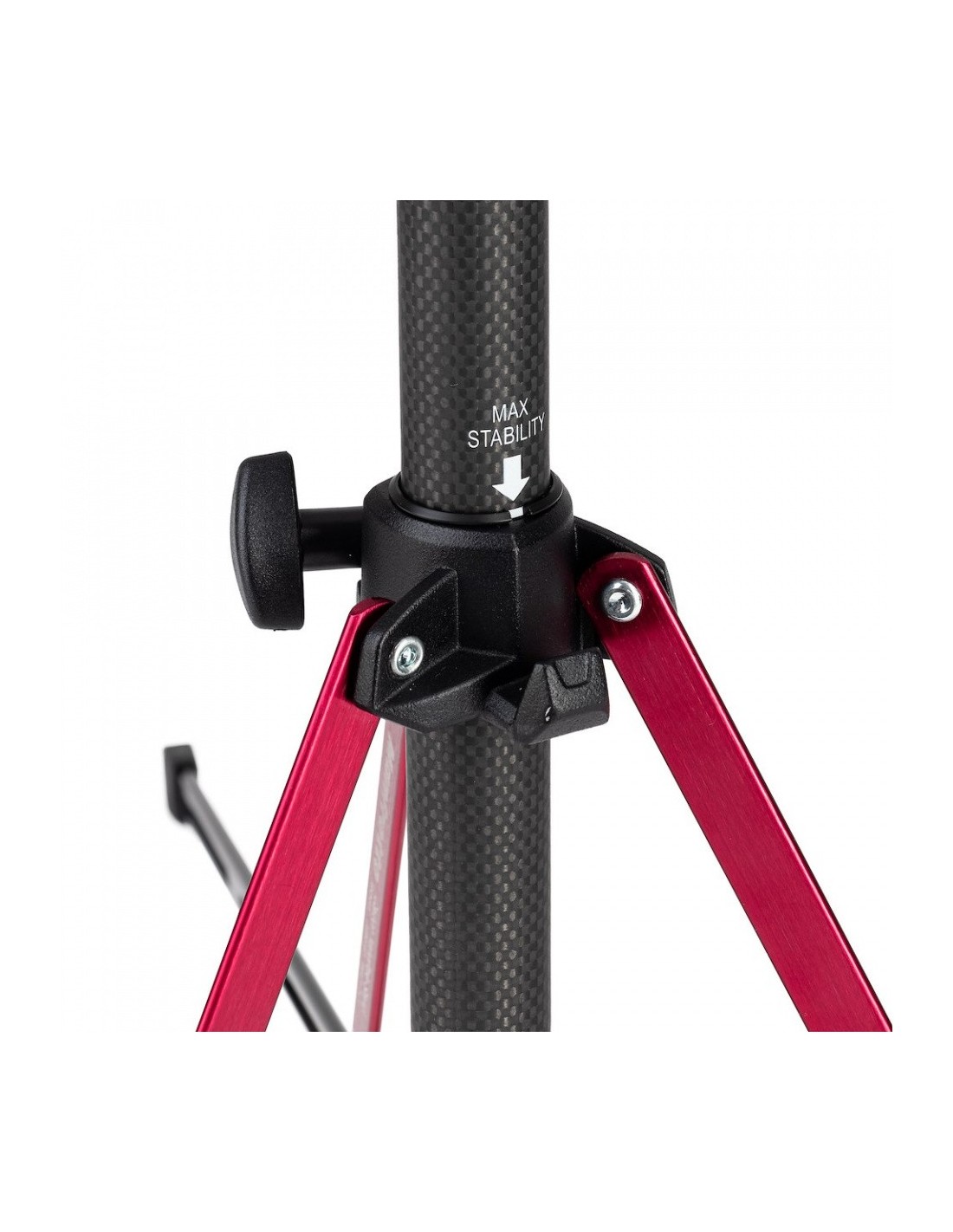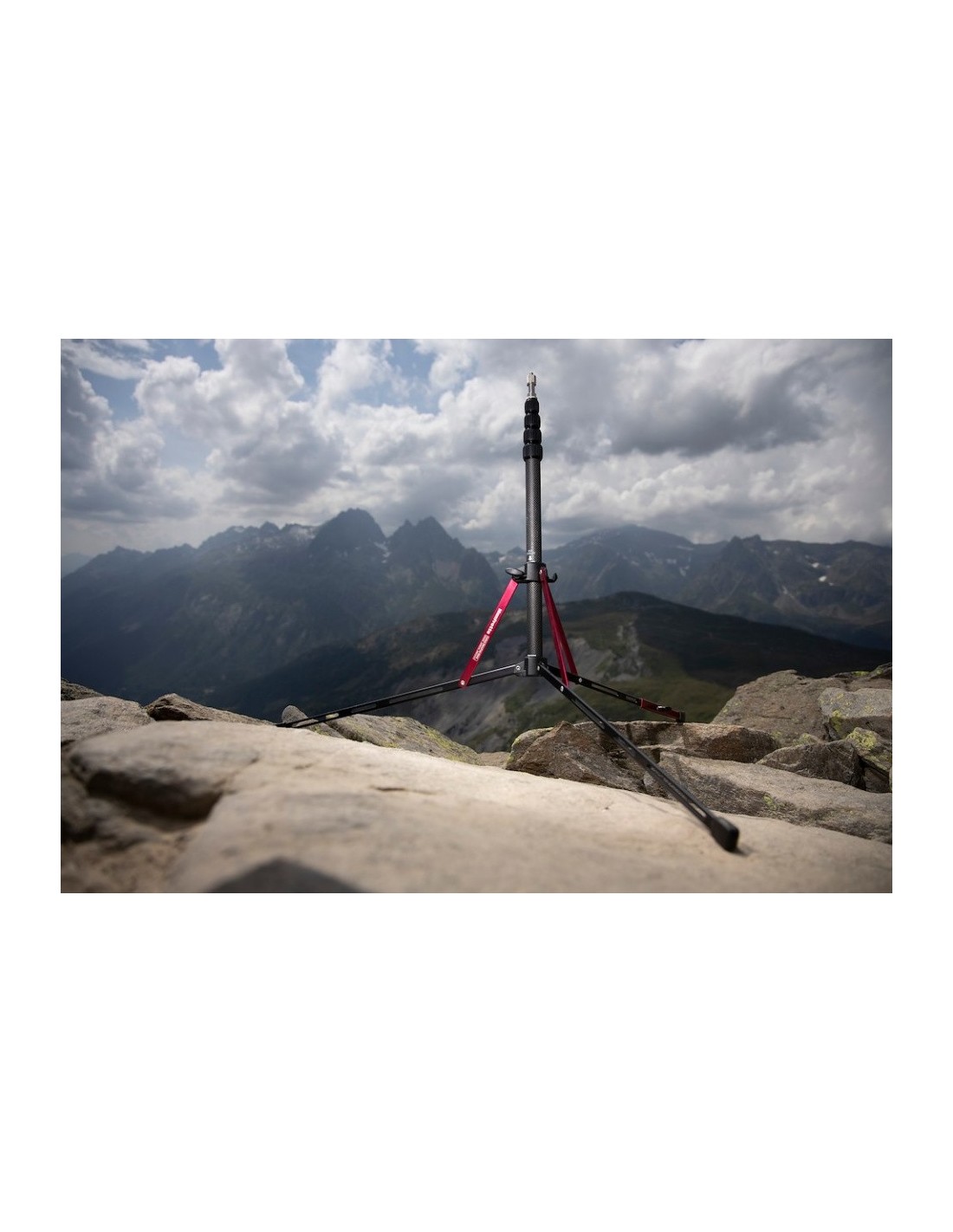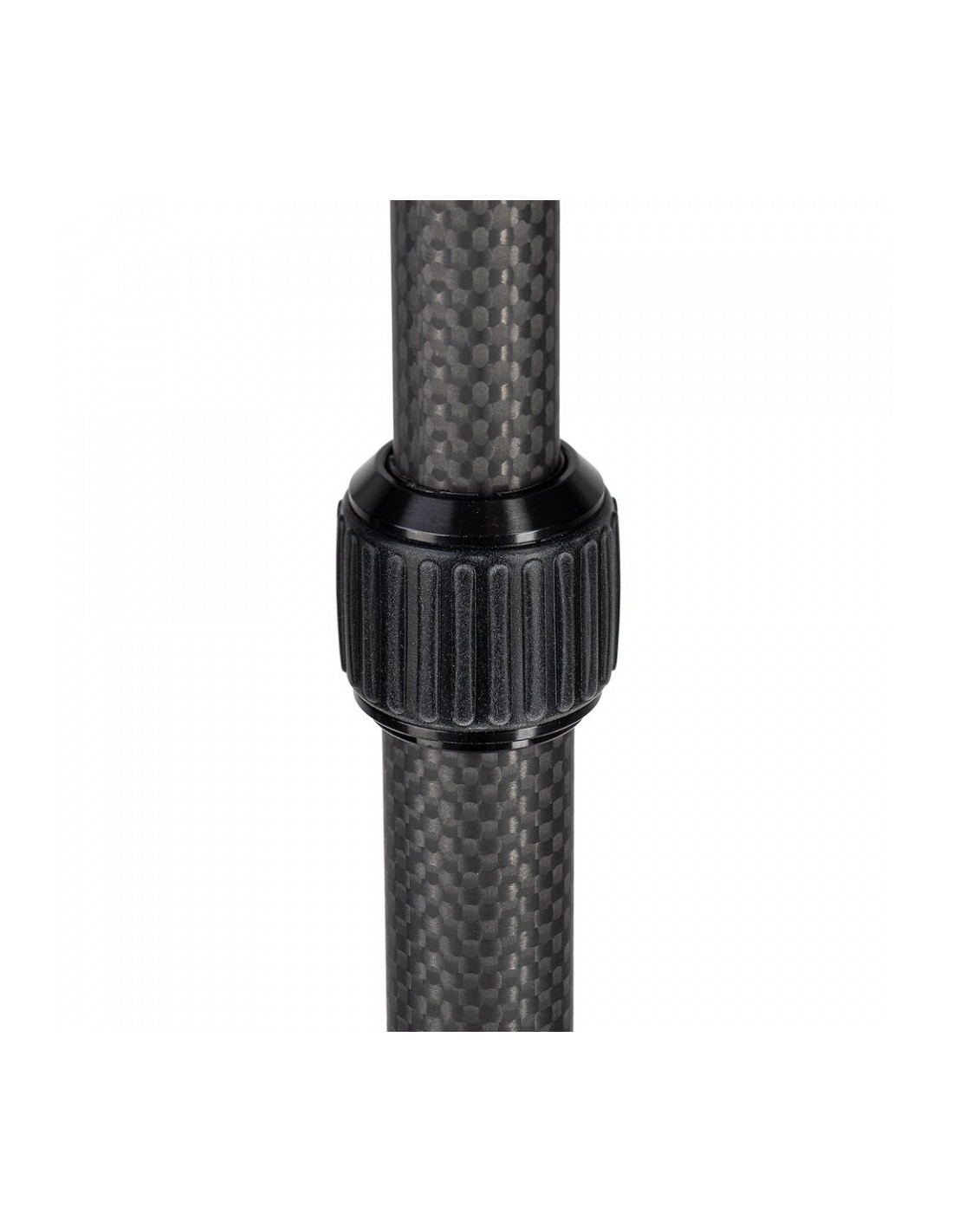 Las características de peso ligero del soporte de nanopolo de carbono se deben a la columna central de fibra de carbono extraíble con cierres giratorios de liberación rápida,