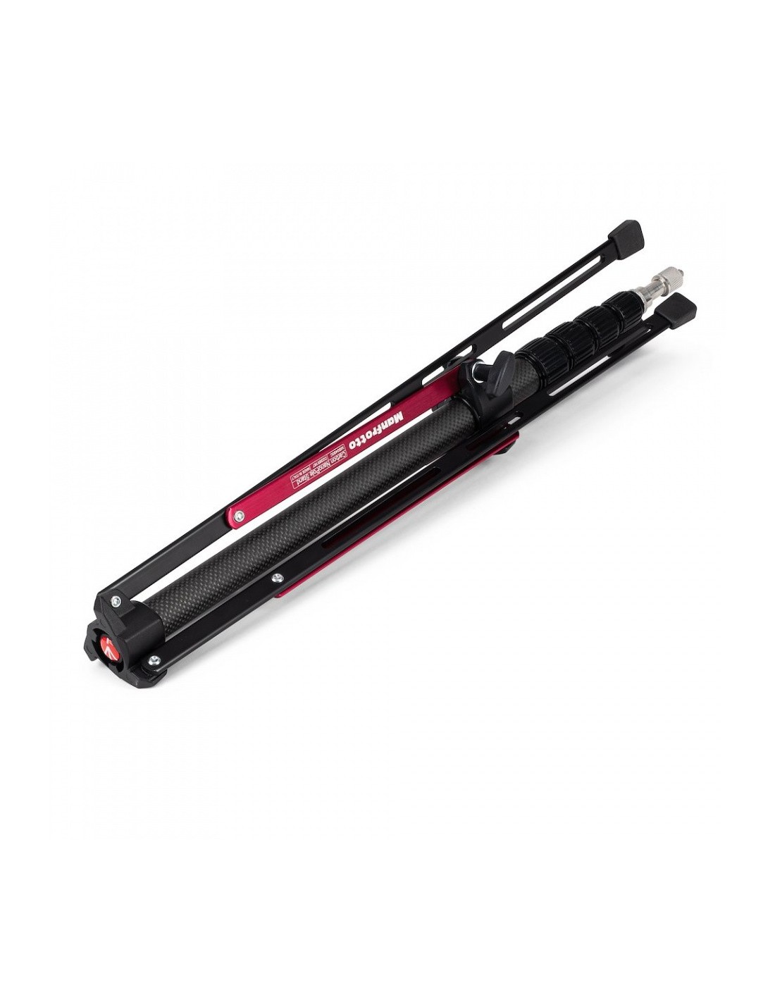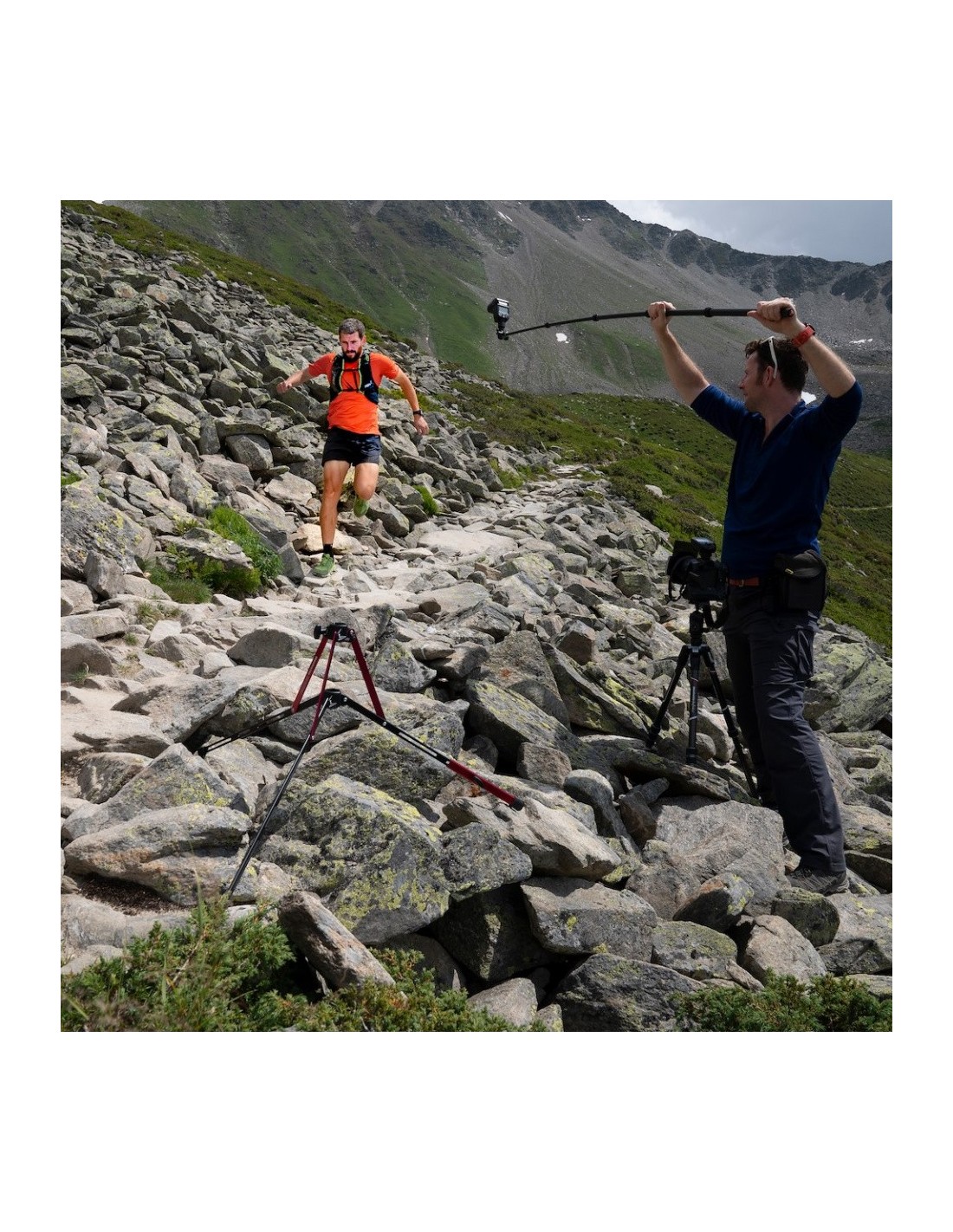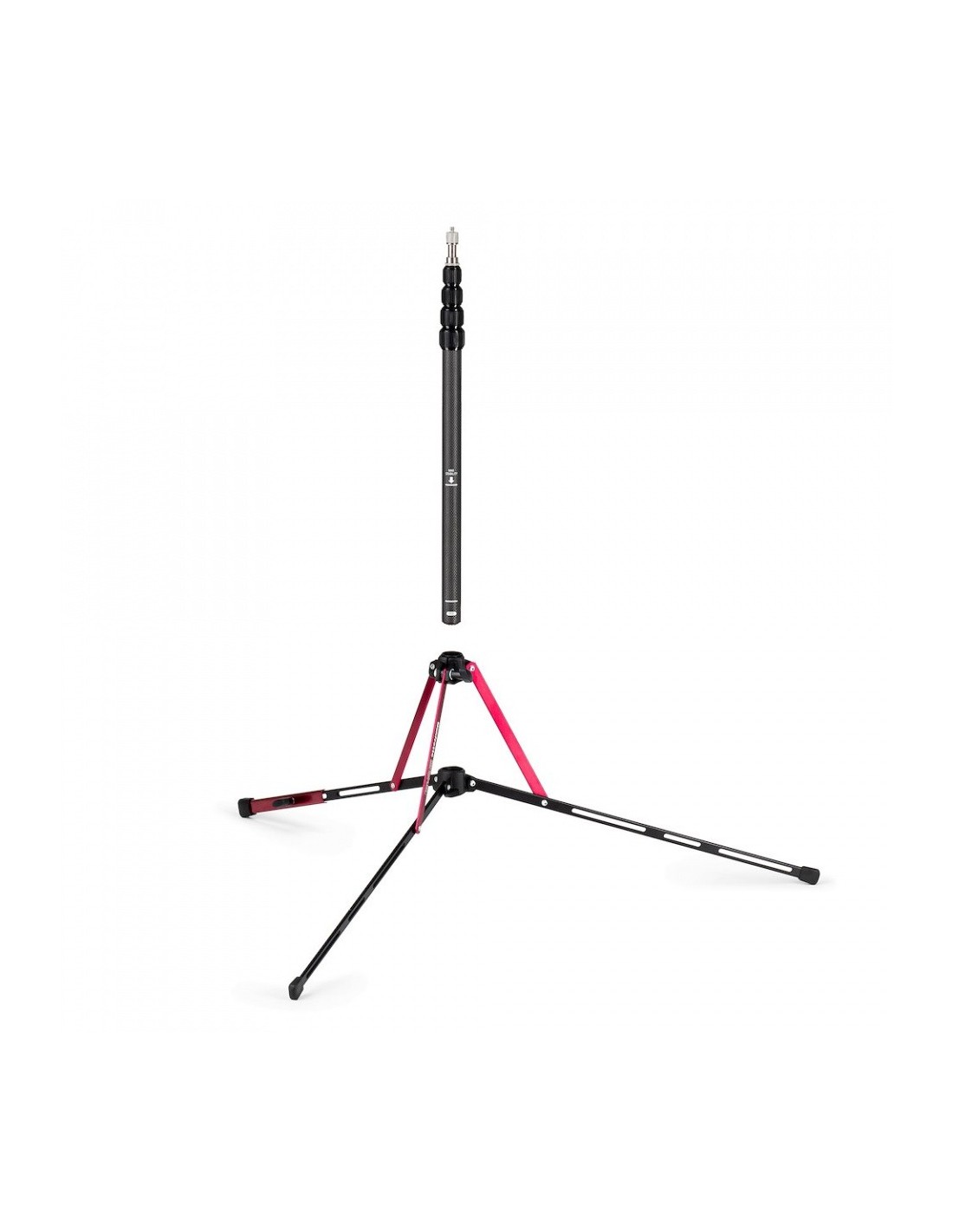 Las características de peso ligero del soporte de nanopolo de carbono se deben a la columna central de fibra de carbono extraíble con cierres giratorios de liberación rápida,