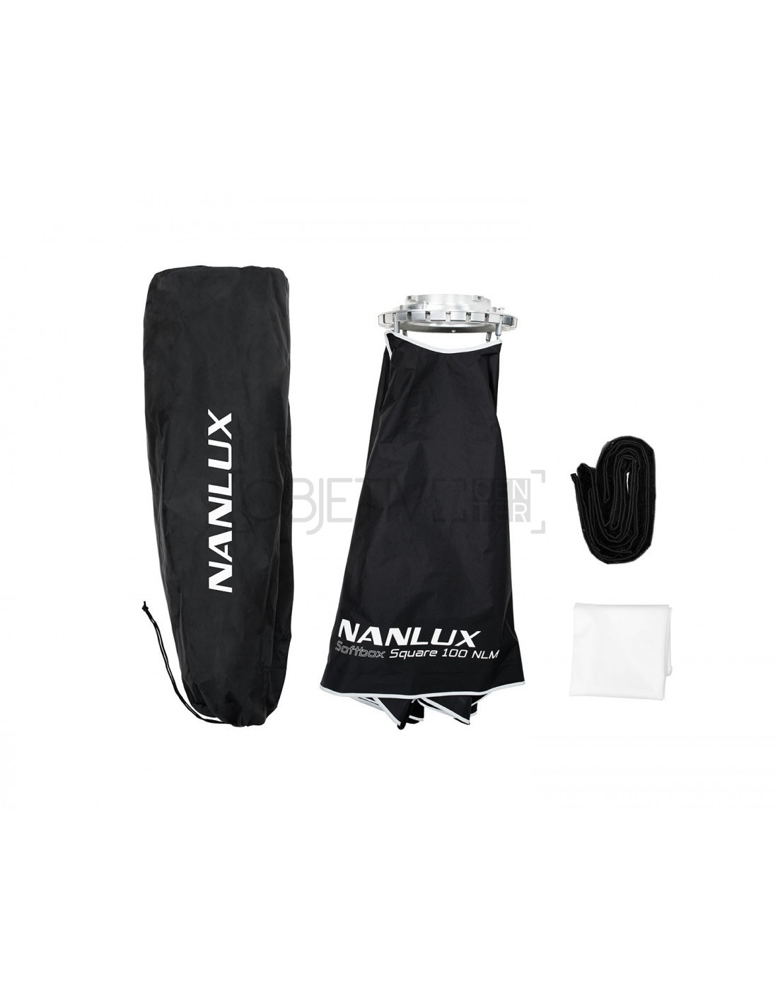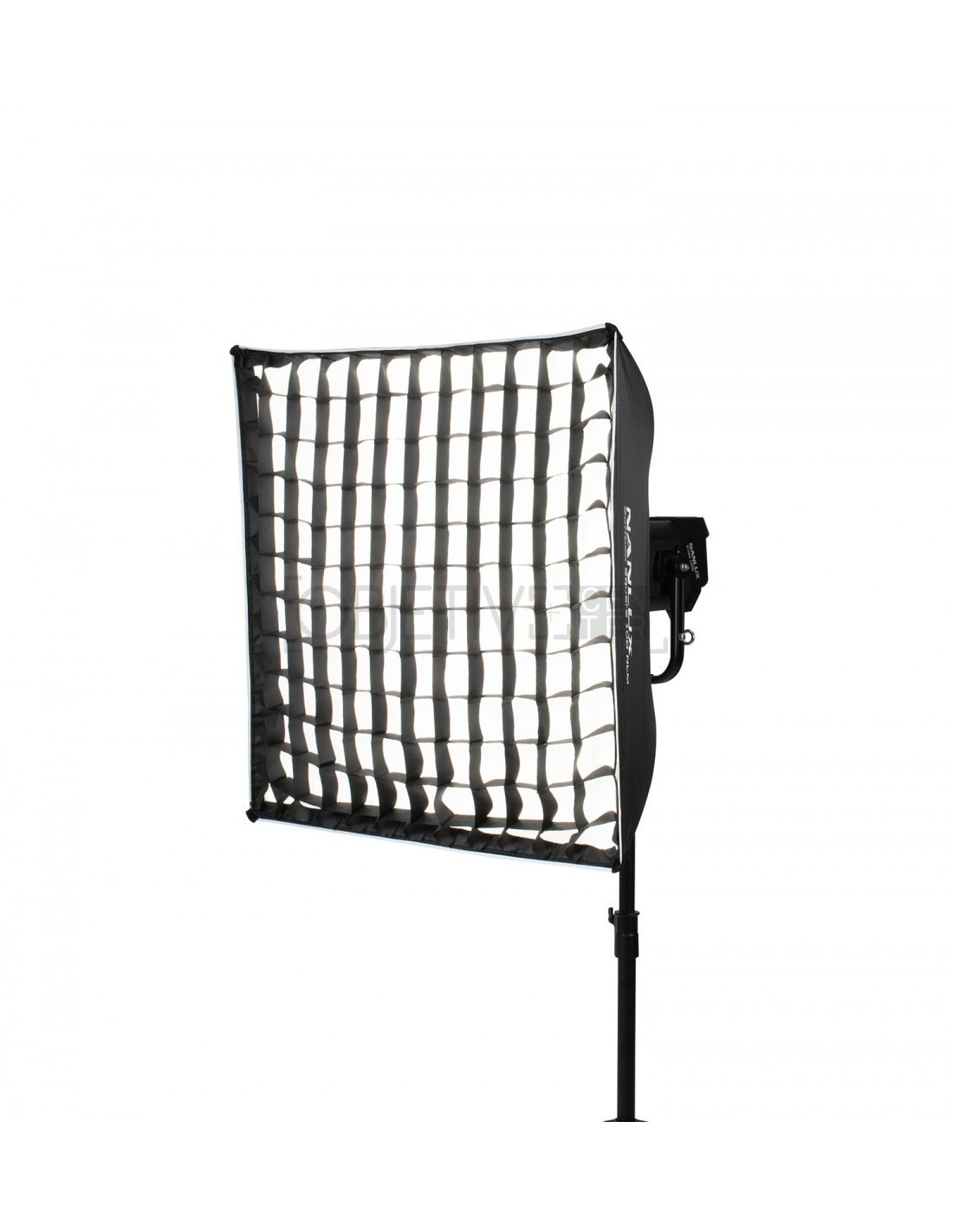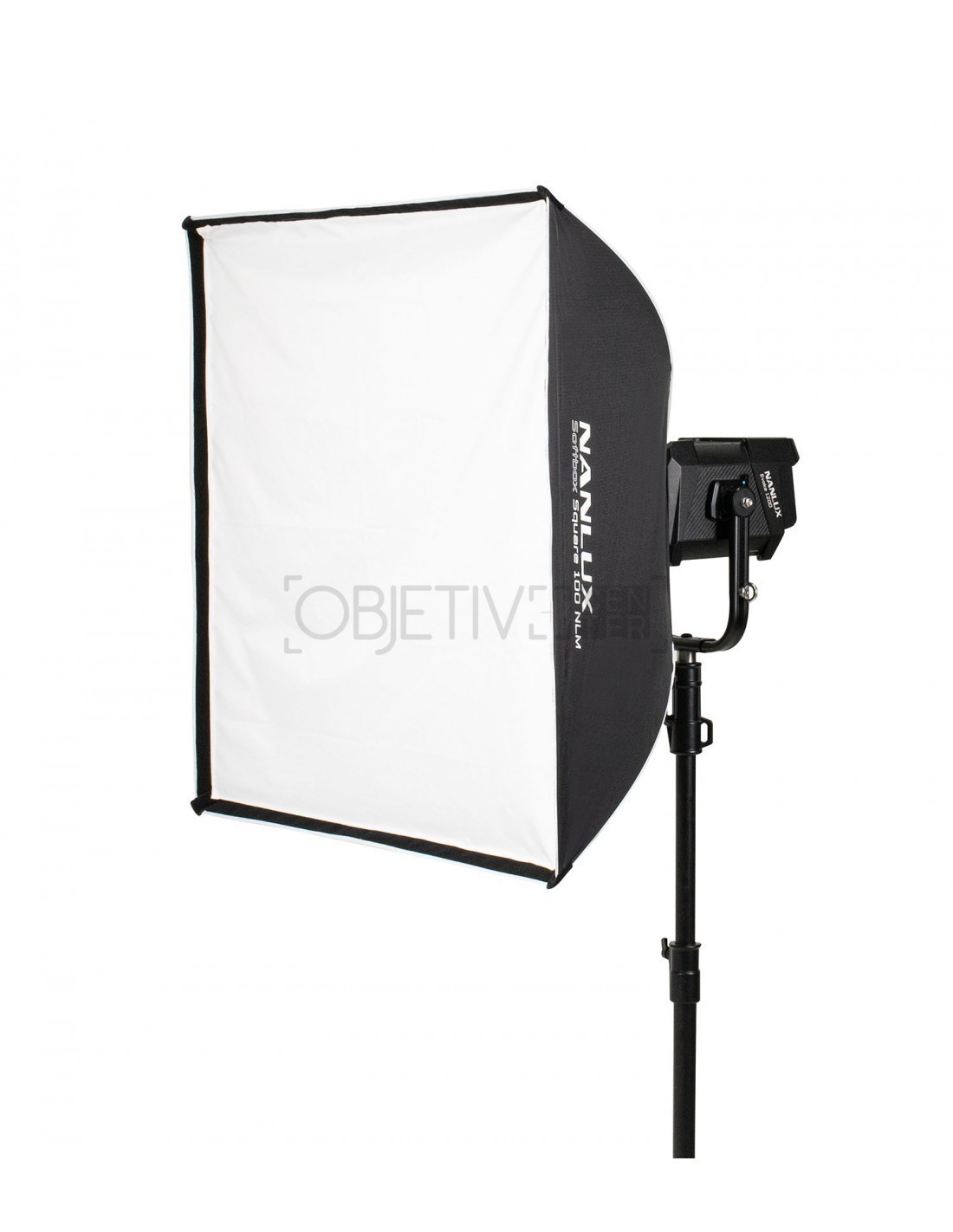 El Softbox Cuadrado de Nanlux de 100x100 cm con montura NL fabricado por Nanlux, es una Ventana difusora cuadrada, que expande el haz de luz del foco led Evoke, con una rejilla o nido de abeja incluida que permite reducir la amplitud del haz y controlar el ángulo, y el uso de los diversos difusores, proporciona control sobre la suavidad de la luz, con interior plateado.