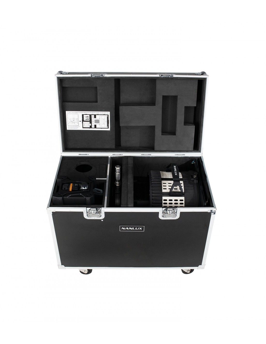 Maleta de transporte con ruedas diseñada para transportar el Foco Led Evoke 1200 y la lente Fresnel FL-35.