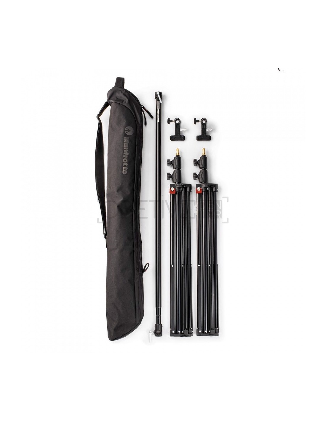 El Soporte Fondos Set Completo de Manfrotto, es un kit con el que podrás colocar los Fondos de estudio, sin temor a que caigan, se rompan o arruguen durante la sesión.