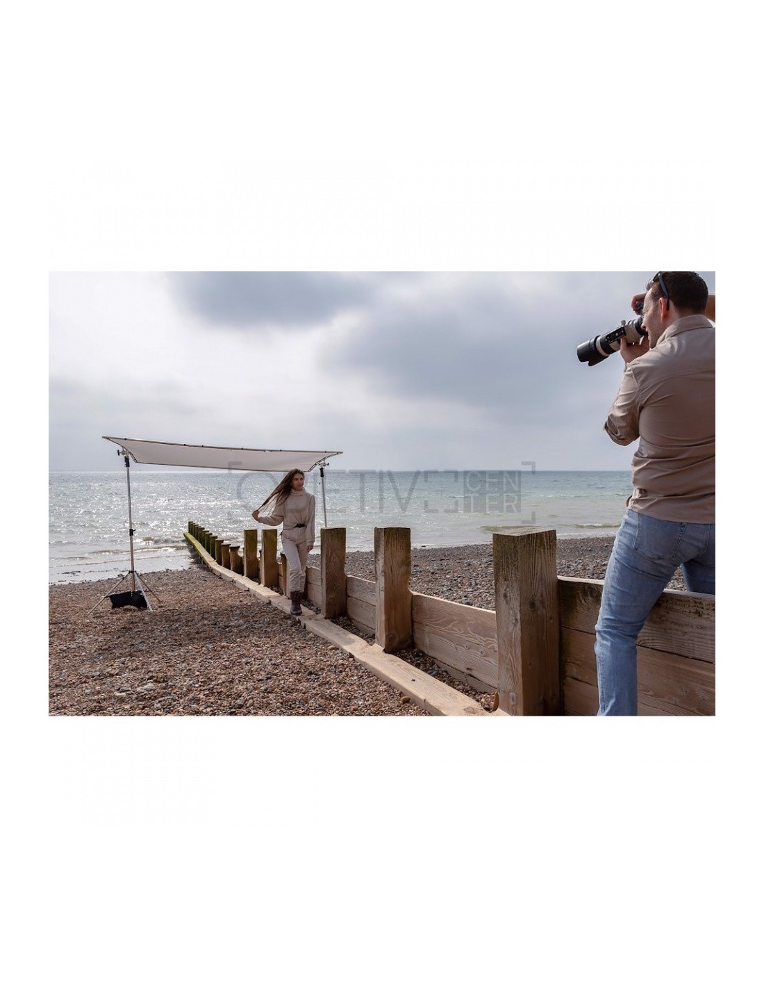 Con un solo clic las telas del Kit quedarán montadas en el bastidor, sin más complicaciones, cuando acaba la sesión el Kit se pliega fácilmente y casi sin esfuerzo y lo podremos transportar con total confianza en su maleta o estuche de transporte.