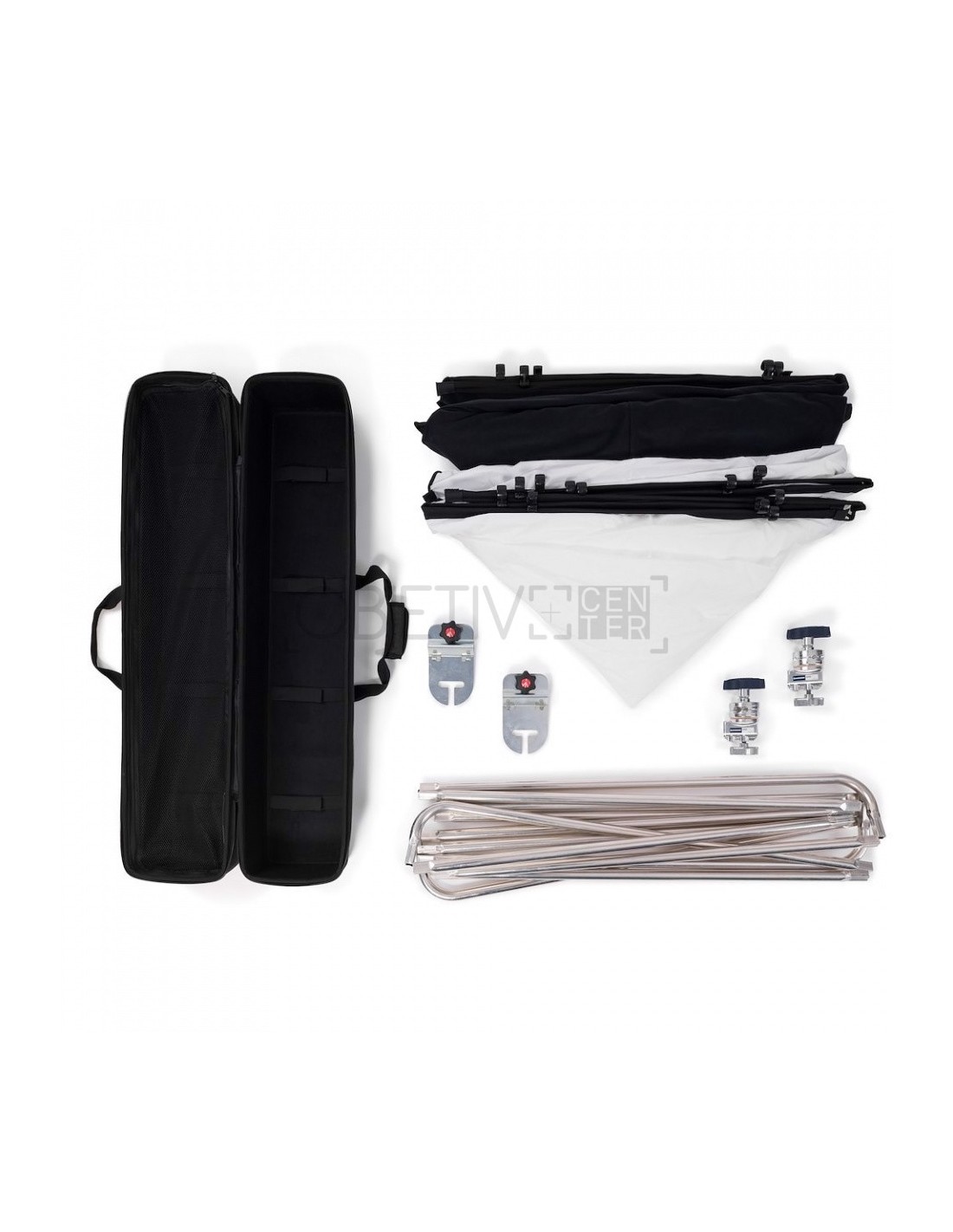 El MFMLLC2201K incluye todos los componentes esenciales que necesita el profesional para el control de la iluminación mediante rebote, difusión o marcado de sus fuentes de luz.