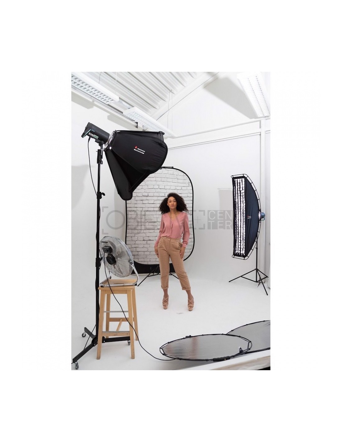 Se manejan fácilmente gracias a su sistema pop-up, y se pueden sujetar con el soporte magnético para fondos y un pie de estudio (disponibles opcionalmente).