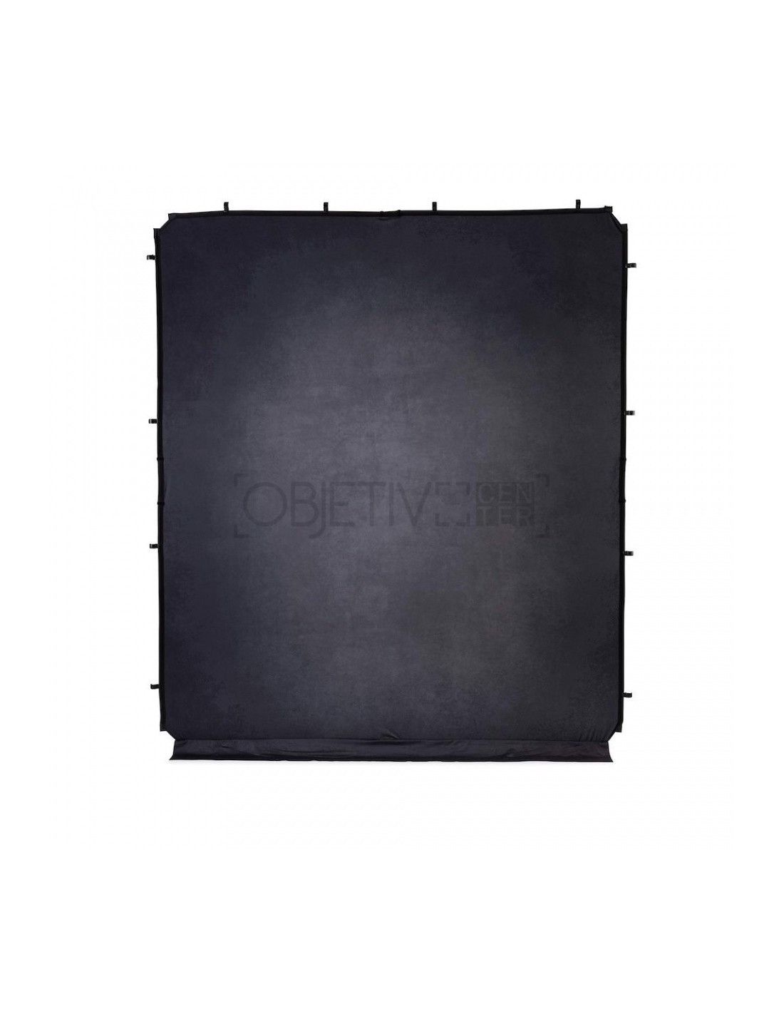 La cubierta del fondo EzyFrame incluye un pequeño faldón de 15 cm a lo largo de su borde inferior, que oculta el bastidor de aluminio y permite que el usuario combine el fondo con una superficie de suelo que haya elegido para capturar imágenes de longitud completa.