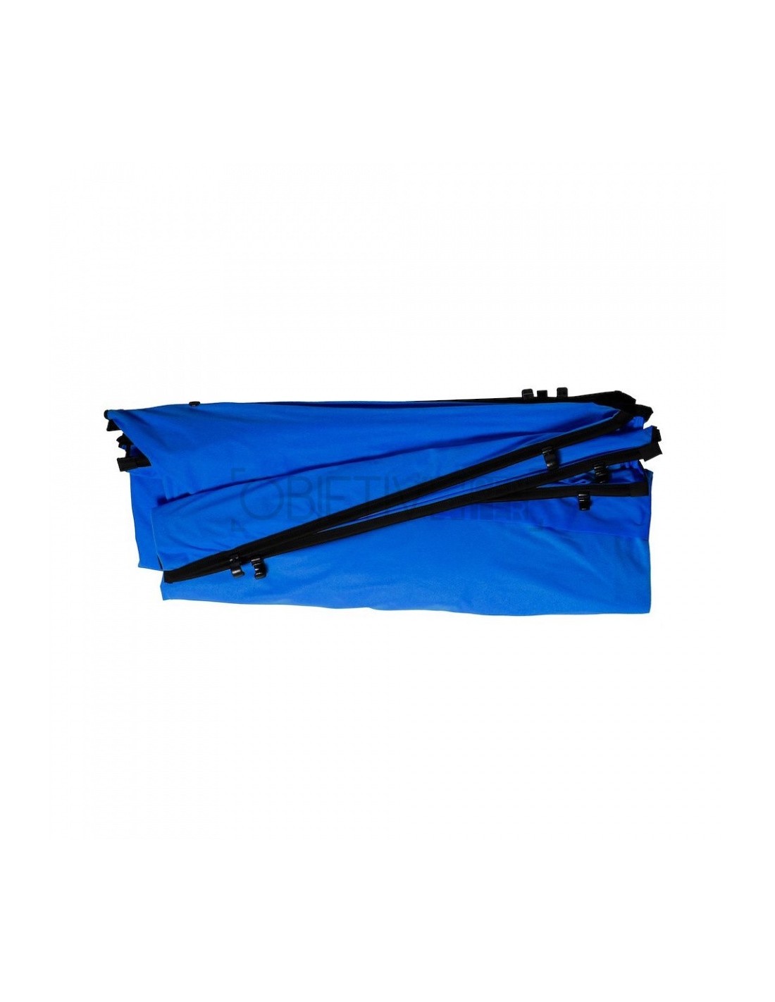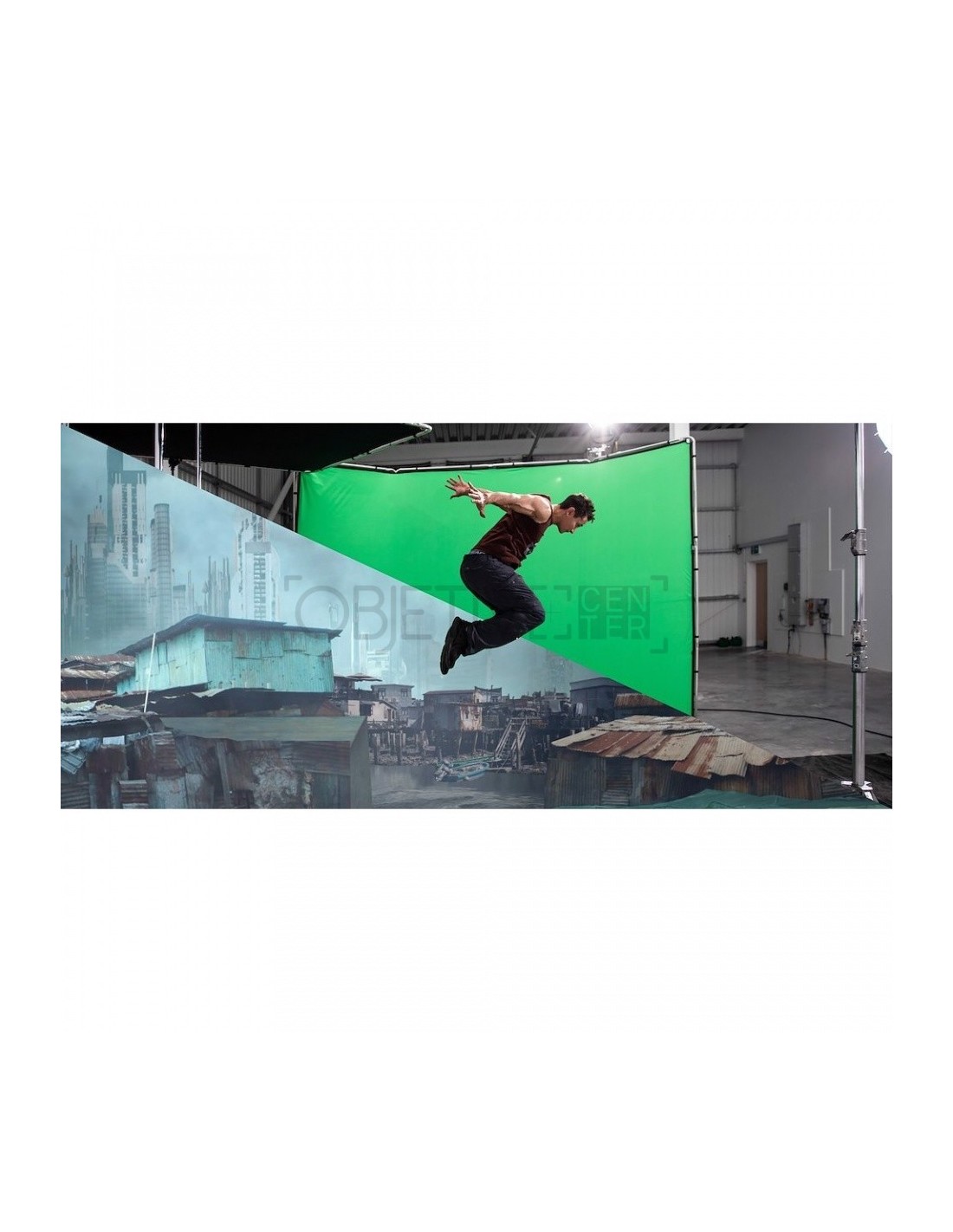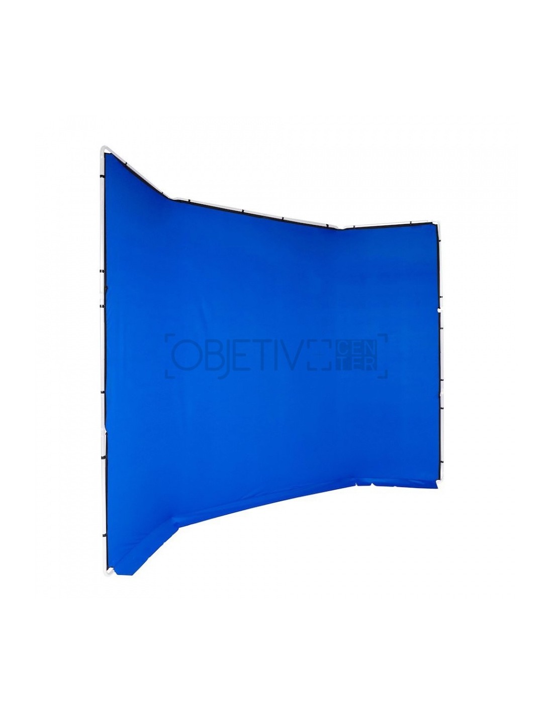 La cubierta de fondo Chroma Key FX de Manfrotto en color azul incluye: una cubierta Chroma Key Azul abrochable (bastidor y bolsa de transporte no incluidos). La cubierta mide 3,9 x 2,8 m (12,7 x 9,1 pies) y proporciona una impresionante superficie de trabajo de 11,2 m² (120,5 pies²). El fondo Chroma Key FX de Manfrotto es el kit ‘todo en uno’ reutilizable para inserción de croma más grande disponible. Esta gran superficie lo hace idóneo para tomas en gran angular y en ángulos bajos, y para filmar sujetos en movimiento, lo que no sería factible con una superficie más pequeña. La posibilidad de reutilizar el kit una y otra vez lo convierte en un recurso invaluable que se amortiza en uno o dos usos, por comparación con un equipo no reutilizable.