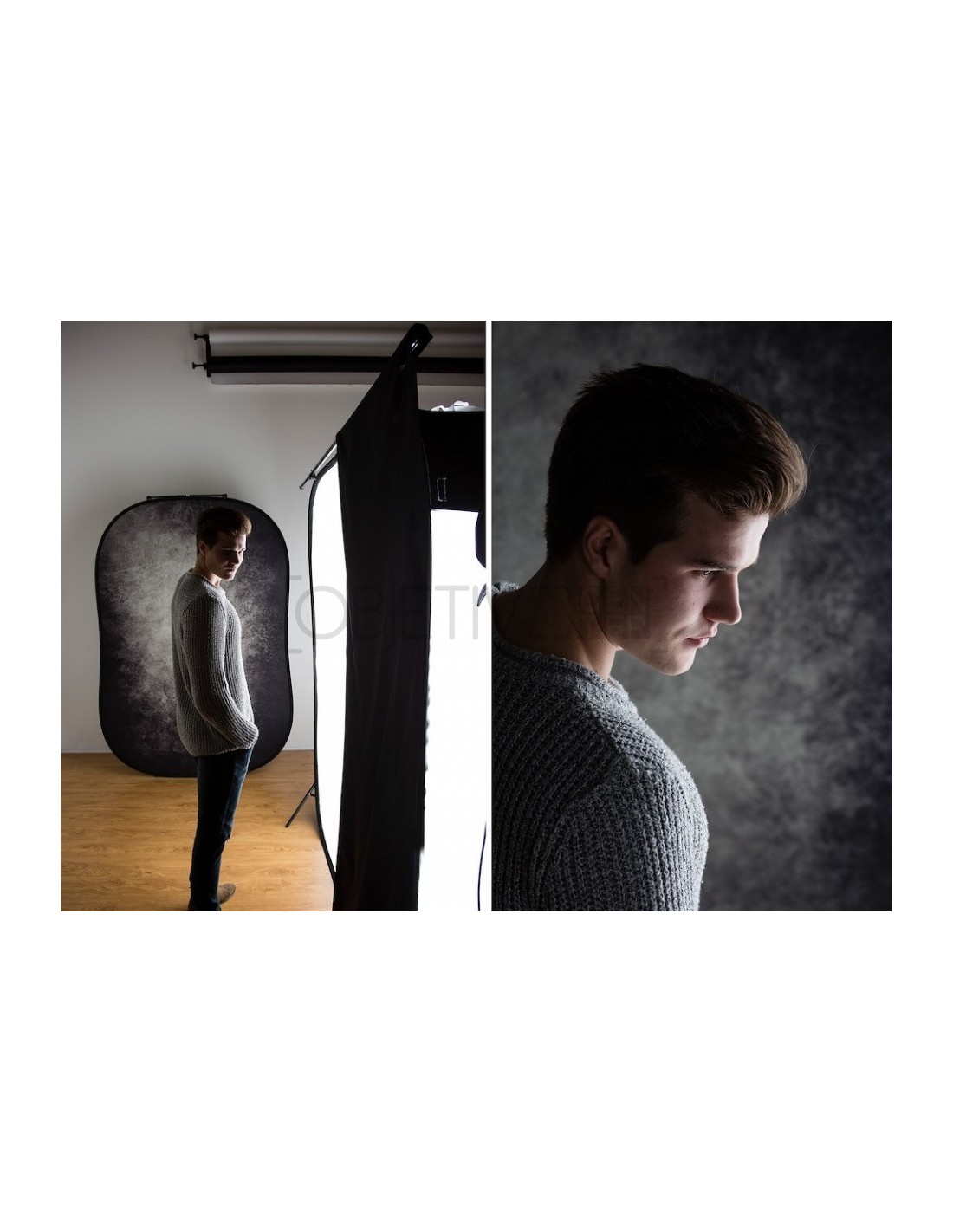 El HiLite Shaper es un panel negro opaco de 86 cm de ancho que se monta en la parte frontal del fondo HiLite 1.8 x 2.15m LL LB8867 (no incluido). Esto moldea eficazmente la luz del HiLite. El modelador se puede mover a cualquier posición a lo largo del poste de aluminio, lo que permite al fotógrafo crear una sola tira de luz o dividir la luz en dos tiras a cada lado del panel modelador. Cada posición ofrece un efecto de iluminación diferente sobre el sujeto, lo que permite al fotógrafo ser tan creativo como desee. El modelador se monta en el HiLite muy fácilmente. Se suministra con un poste de aluminio plegable que simplemente se engancha en la parte superior del HiLite y el moldeador luego se cuelga del poste.