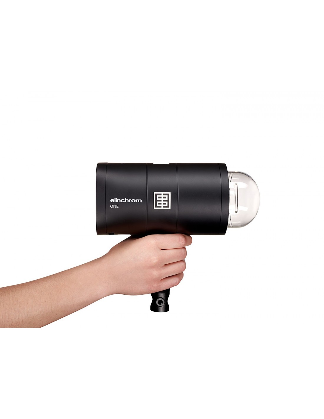 El cabezal basculante de metal bidireccional con soporte paraguas de 7-8 mm se separa, lo que hace que el Elinchrom ONE sea ergonómico para sostener la mano.