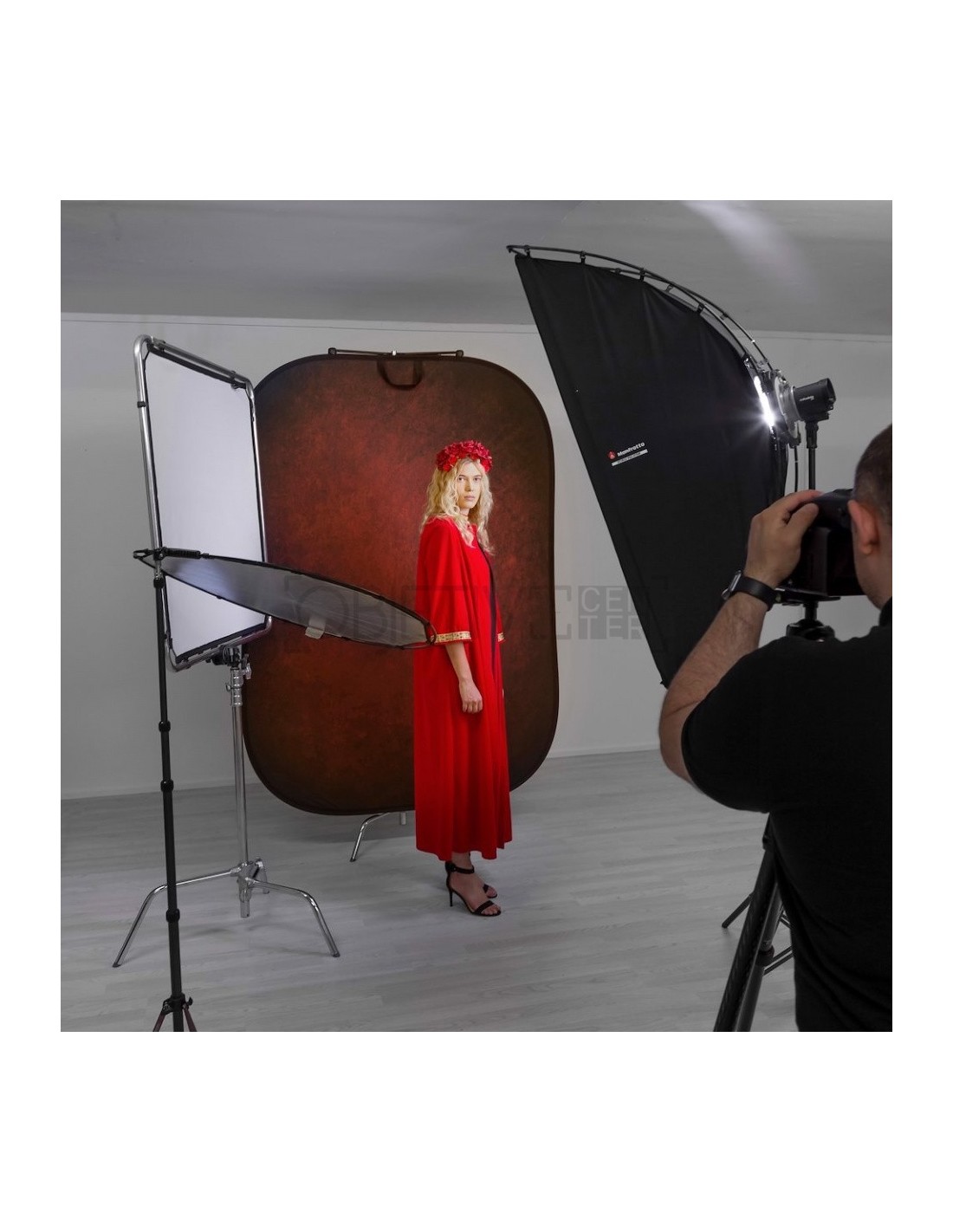 Podrás sostenerlo con comodidad utilizando el Soporte Magnético para fondos plegables de Manfrotto LLLB1122.