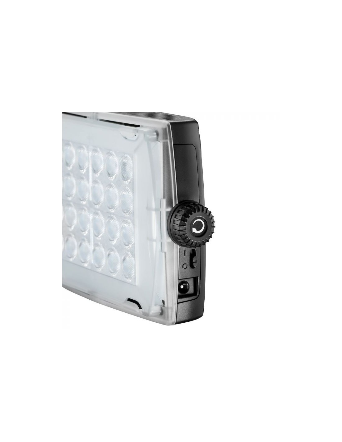 El panel se puede alimentar mediante seis baterías estándar AA (no incluidas), mediante corriente usando el adaptador AC, y se puede también alimentar mediante una batería de litio ion tipo L (no incluida) usando el adaptador de batería (el adaptador AC y el adaptador a baterías tipo L se incluyen con la luz).