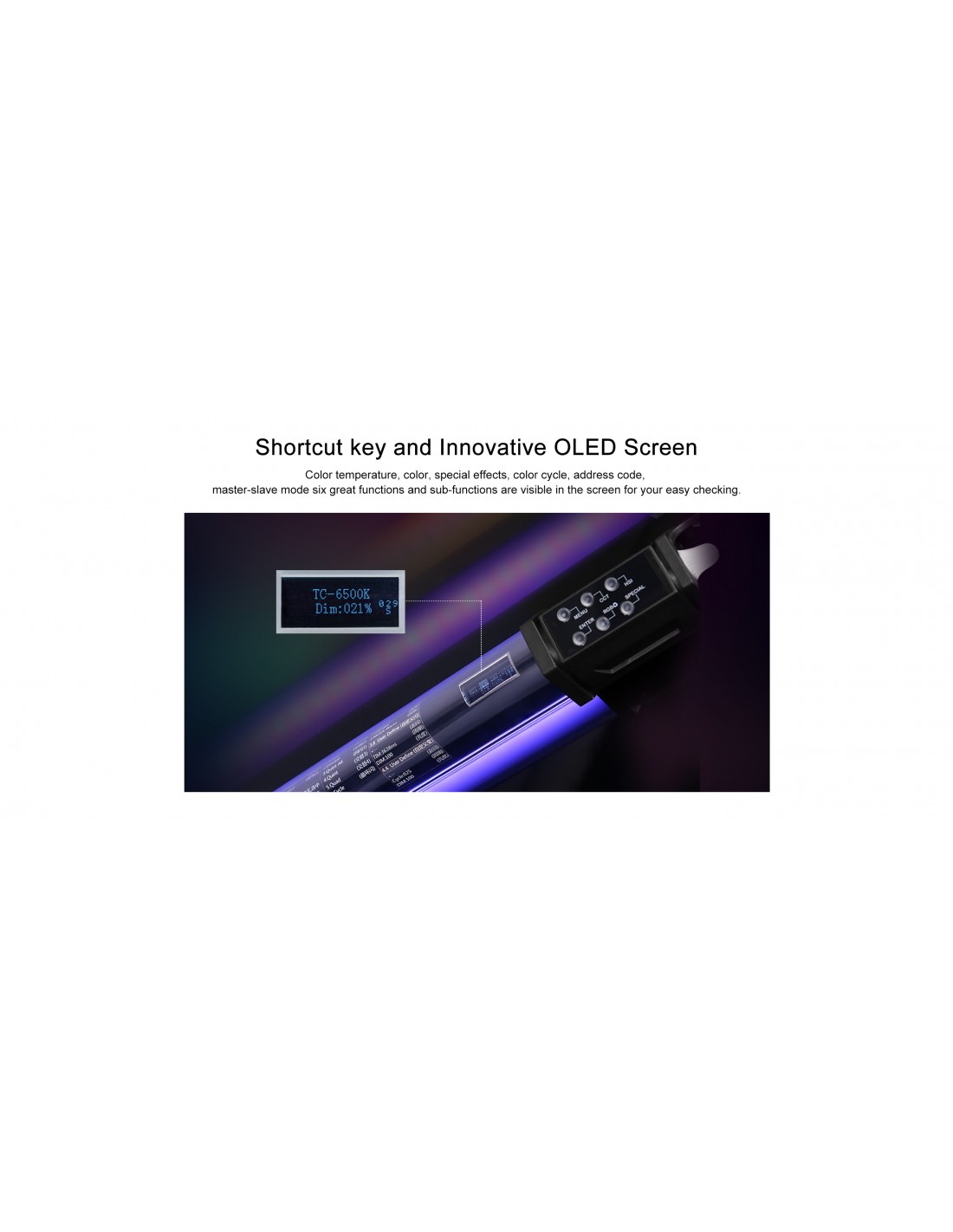 Efectos creativos: luz tipo tormenta, luz tipo vela, flash ciclo de color o luz de emergencia, incluso con la mitad del tubo a un color y la segunda mitad a otro. Una gama de efectos sin igual, perfectos para su uso en publicidad o spots, y ya utilizados en producciones de video para series de TV o en películas de cine.