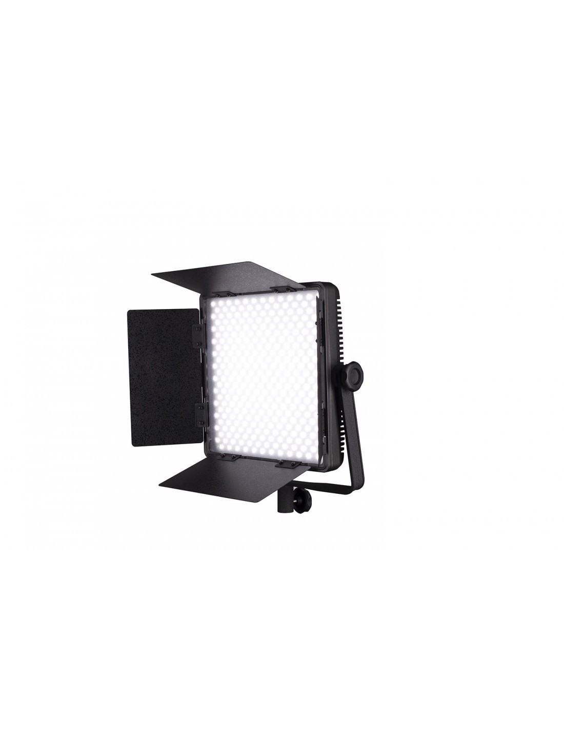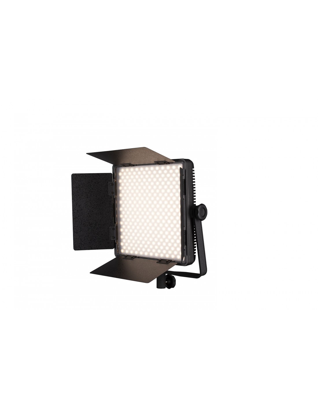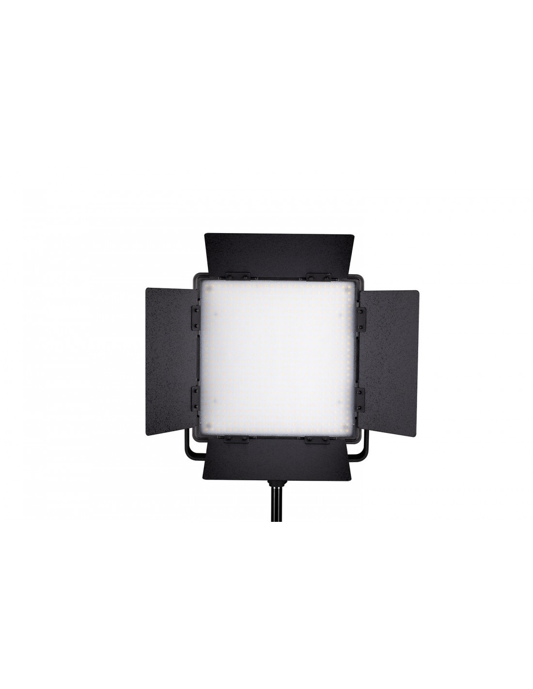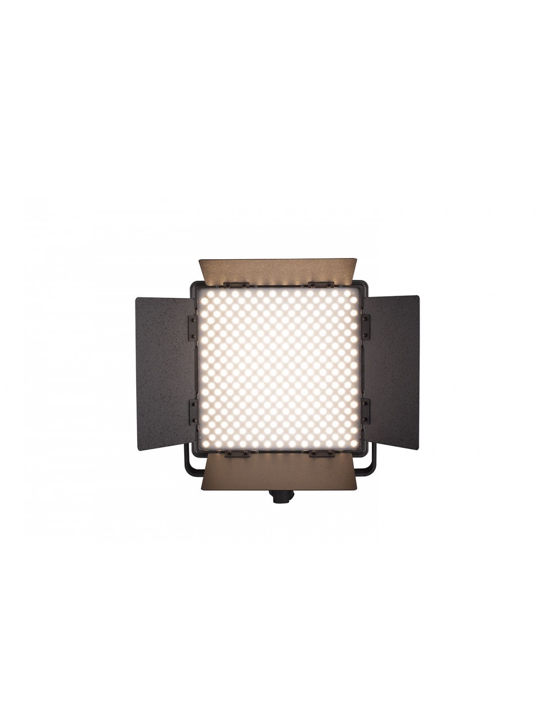 Panel LED bicolor de 36 W de potencia, iluminancia de 5.220 lx a 1 m, temperatura de color de 3.200 K a 5.600 K con variación continua, CRI: 95, dimmer para regulación de potencia continua. Dimensiones: 340 x 73 x 380 mm. Peso: 1.930 g. Incluye filtro difusor y azul y adaptador AC. Permite la alimentación a través de baterías V-Mount (no incluidas). Incluye bolso de transporte.