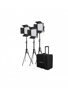 Éste kit de 3 paneles led 600CSA CON ALETAS , incluye támcien 3 pie de estudio y 1 maleta de transporte Trolley. Convirtiendo éste kit en una herramienta de trabajo muy completa. El panel LED de Nanlite que proporciona una iluminación continua brillante, estable y libre de parpadeo, bicolor con temperatura de color variable de 3.200 K a 5.600 K, de gran utilidad para fotografía de estudio y producciones de video. Admite dos fuentes de alimentación, a red o a batería, lo que lo convierte en una fuente de luz led portátil muy luminosa para uso en localización y exteriores.
