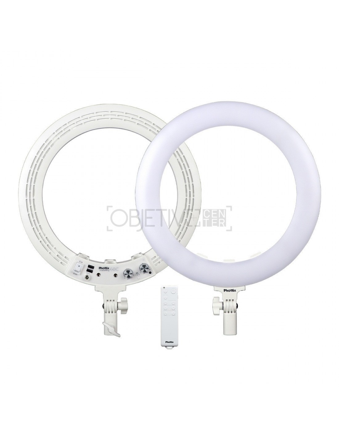 La luz LED Nuada Ring40C es una luz LED bicolor de 15” de diámetro y presenta el ecosistema LED ECO2 de Phottix a través de un control remoto IR (alcance de hasta 16,4 pies/5 m) con tres canales y un botón de obturador Bluetooth incorporado para controlar su dispositivo para tomar fotos y grabar videos.
