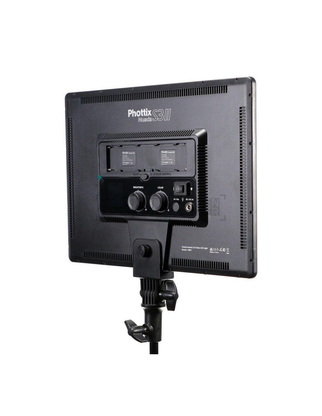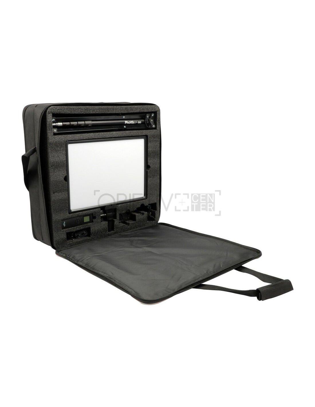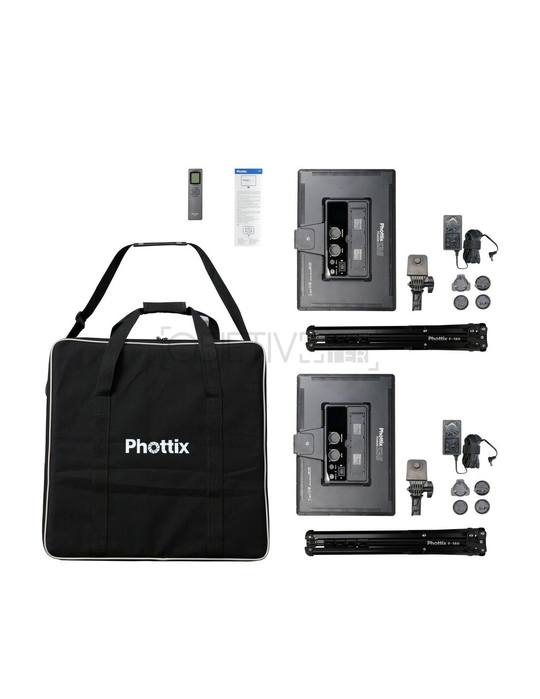 Un estuche de transporte personalizado incluye 2 paneles LED S3 II, 2 soportes de luz F180 de 87”, 2 adaptadores de CA, enchufes internacionales y un control remoto. El Nuada S3 II LED de nueva generación cuenta con 50 W de hermosa luz suave y favorecedora a través de un control remoto de 2,4 GH (rango de hasta 164 pies/50 m) con 3 grupos y 40 canales.
