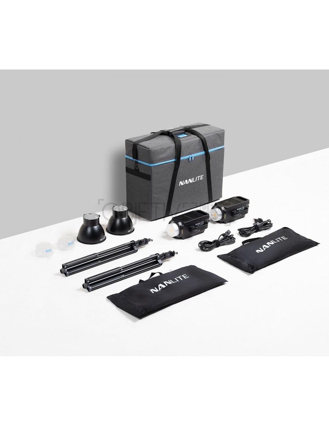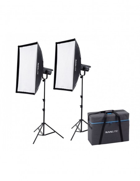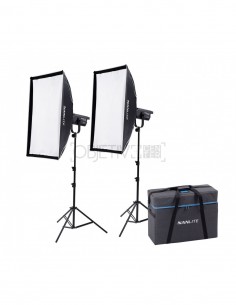Incluye: 2 x Foco Led FS-150B, 2 x Cable de Alimentación 4,5m, 2 x Parábola reflector, 2 x Soft Box Recta 90 x 60 cm., 2 x Pie de estudio compacto L-186, 1 x Maleta de transporte.