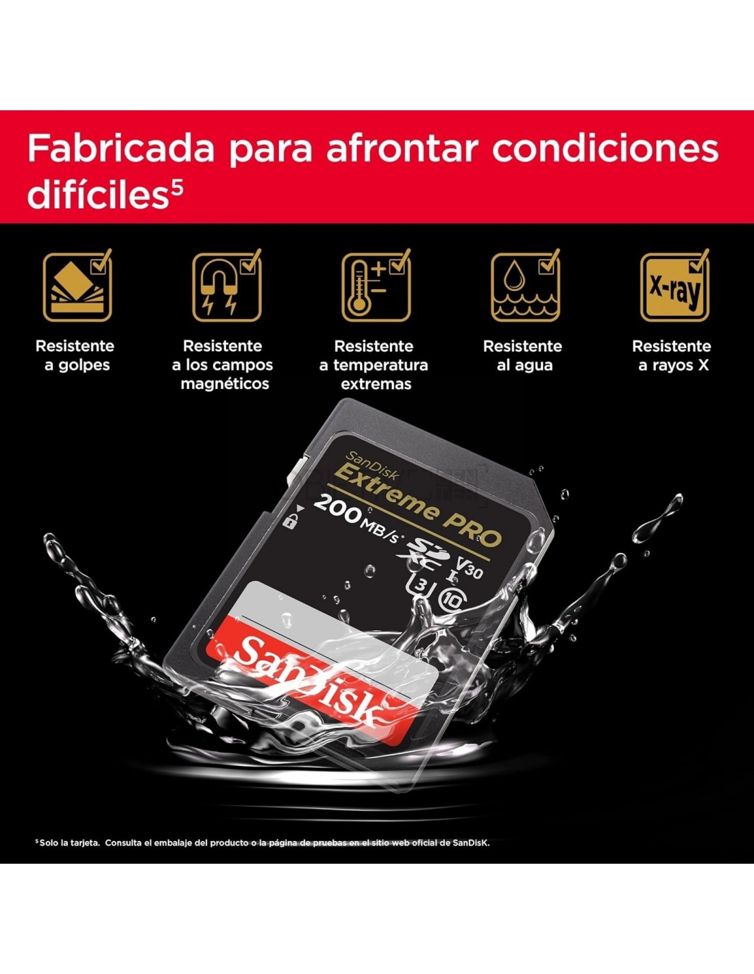 (5) Solo tarjeta. Consulta el embalaje del producto o la página sobre resistencia en el sitio de SanDisk.