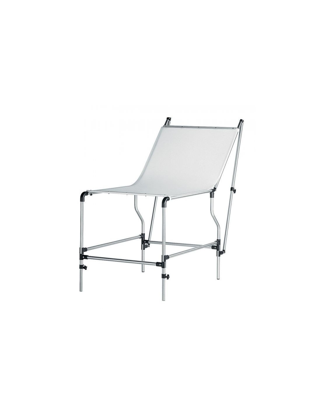 Su altura máxima, con el panel en posición vertical, 157cm. Panel trasero ajustable en inclinación y patas ajustables.