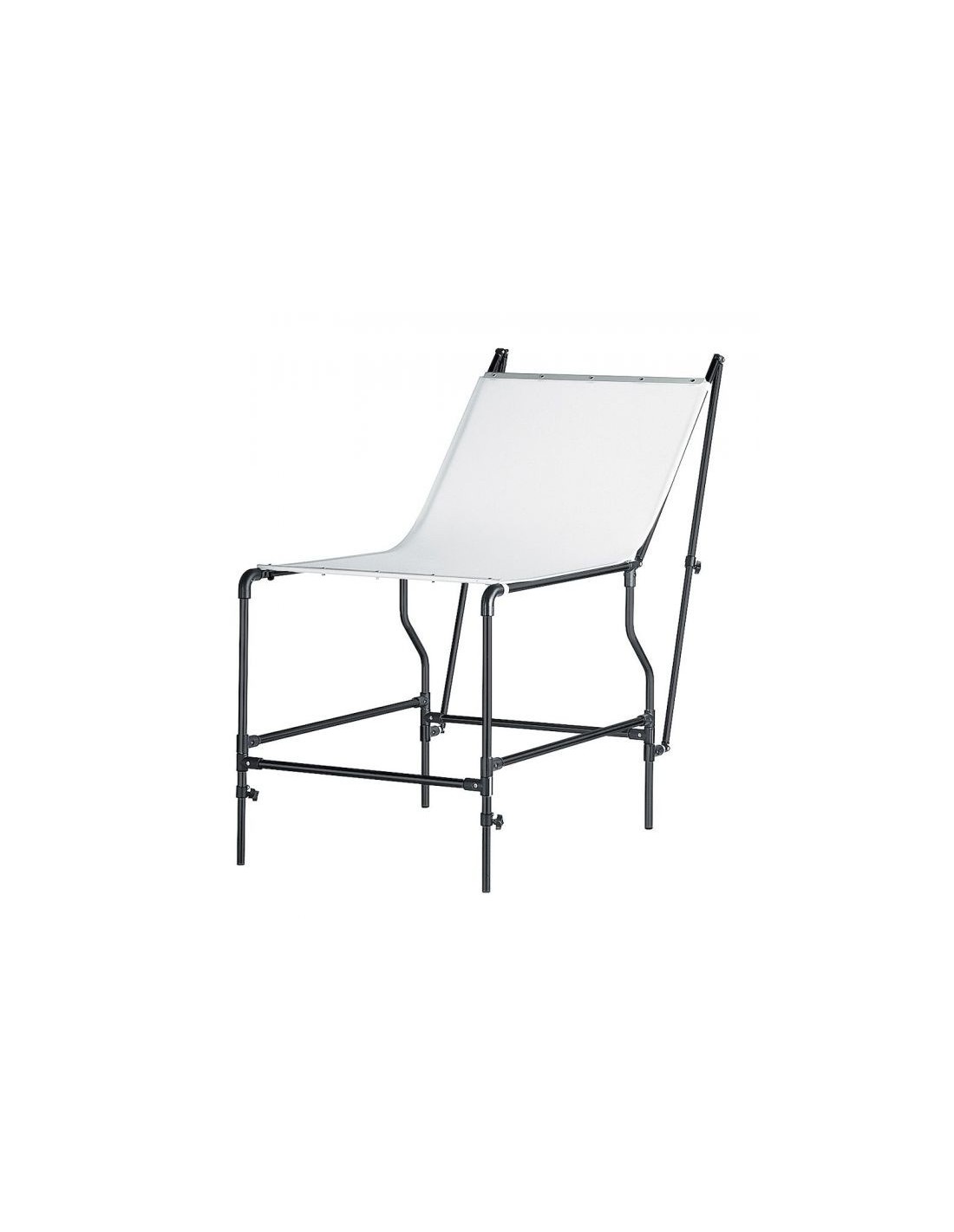 Tiene unas dimensiones de 150cm x 78cm. La altura de trabajo es de 70cm. Su altura máxima, con el panel en posición vertical, 157cm. Panel trasero ajustable en inclinación y patas ajustables.