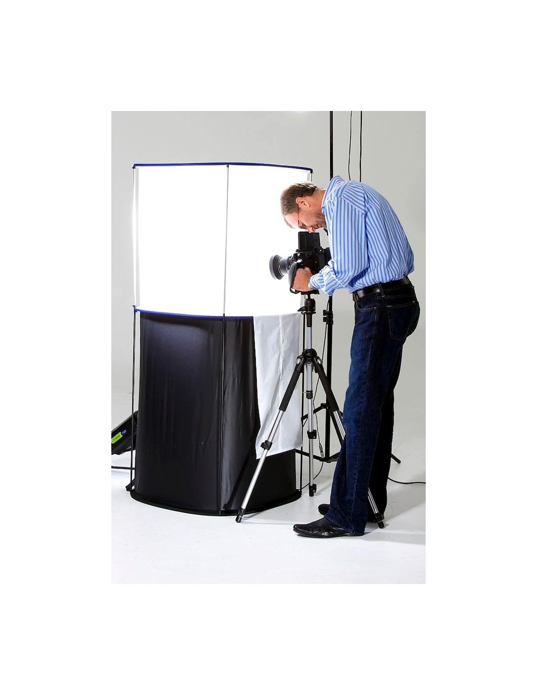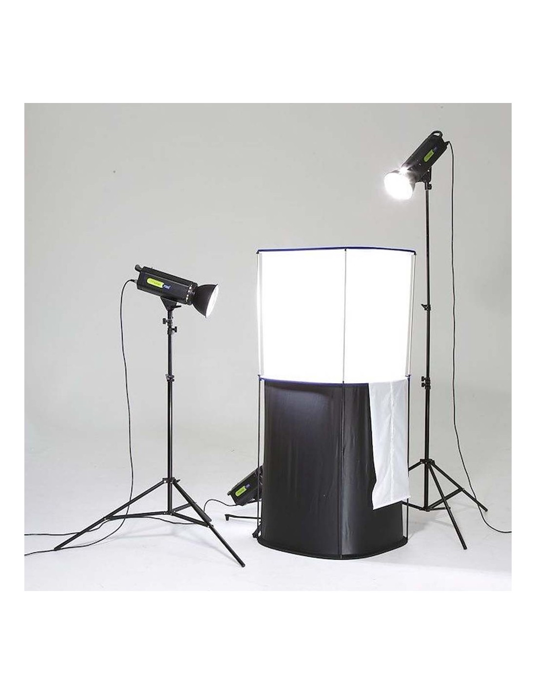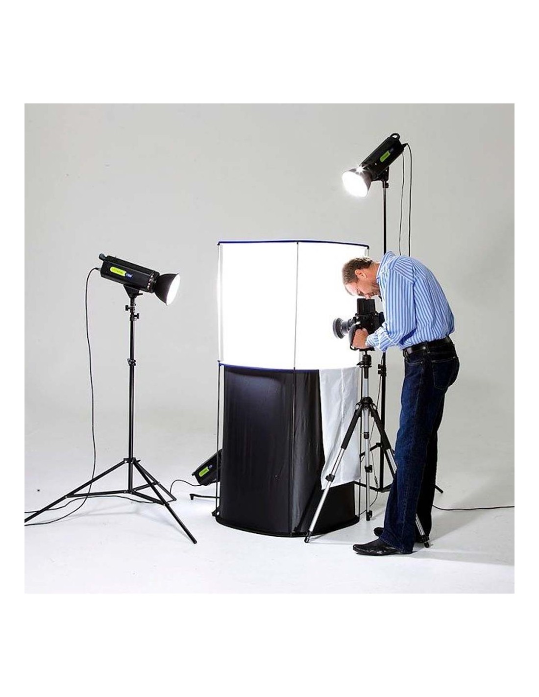 Lo último para fotografía de producto. Permite control total de las sombras y la reflexión, no precisa de soportes, proporciona iluminación 360º en todos los puntos, con montaje ultrarrápido y retroiluminación.