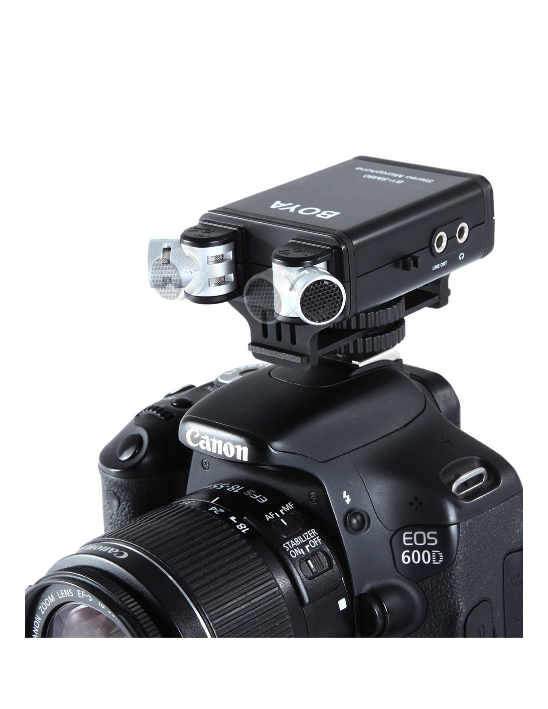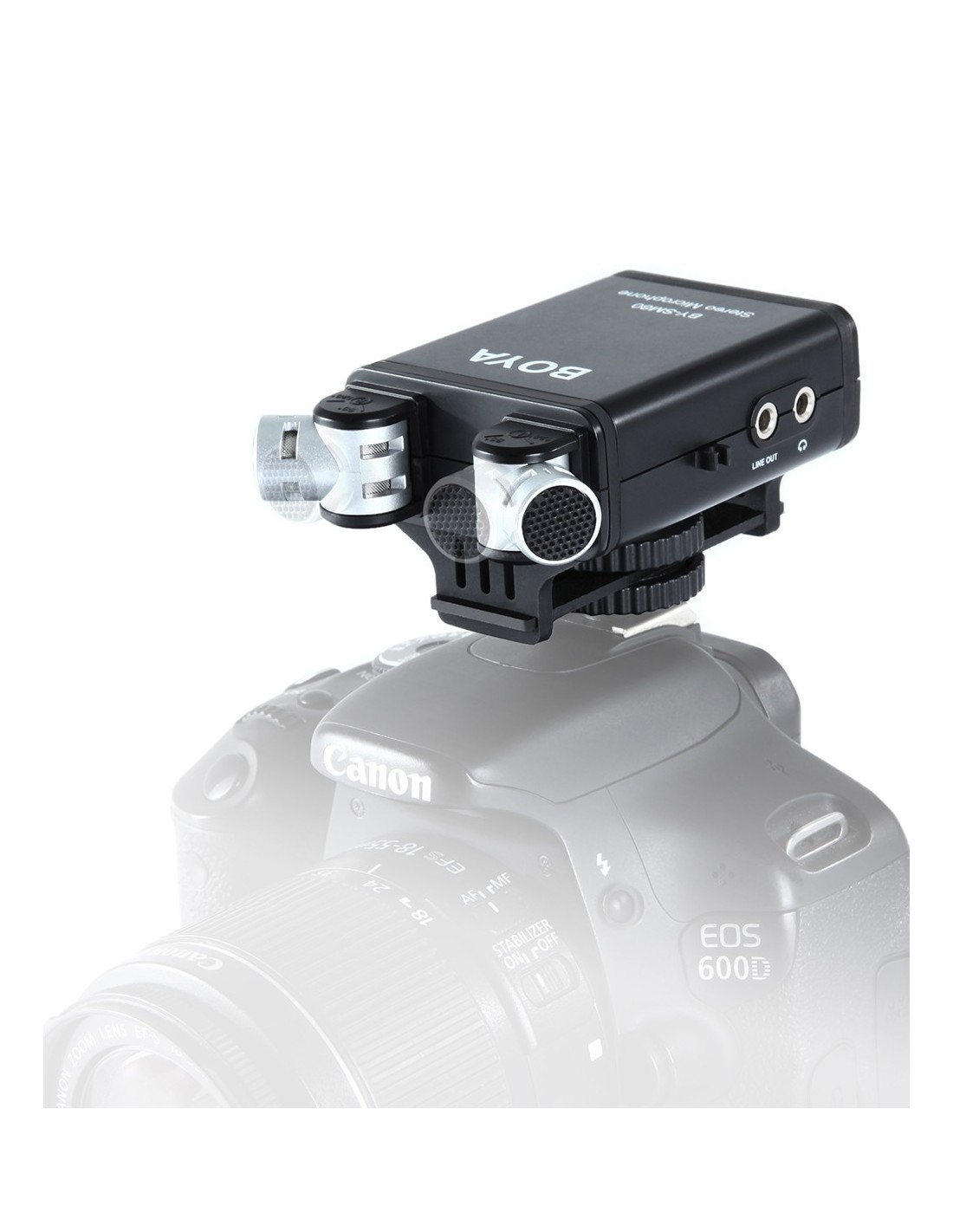 Para cuando es necesario poder controlar el ángulo de captación del sonido, el micrófono estéreo Boya SM-80 te permite ajustar la cobertura entre 90 y 120 grados. Un micrófono estéreo profesional formado por dos micrófonos situados en paralelo, con ángulo de cobertura personalizable independiente uno del otro, multiplicando las posibilidades de grabación de audio.