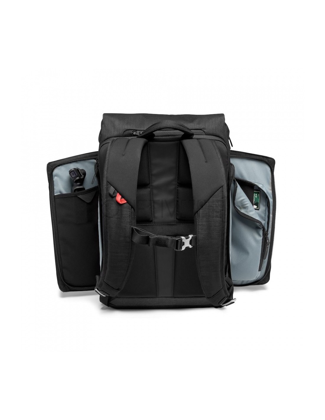Para una mayor seguridad, incorpora el sistema de protección Manfrotto Slim-Tech, que ofrece la ventaja de permitir un mayor espacio para el equipo, sin renunciar a la máxima protección, gracias a un sistema de divisores más delgados de altas prestaciones. Podemos también transportar un trípode gracias a su versátil soporte específico, diseñado para alojar un trípode horizontalmente en el frontal o bajo la mochila, o verticalmente en el frontal. Disponemos además de bolsillos elásticos externos a ambos lados de la mochila.