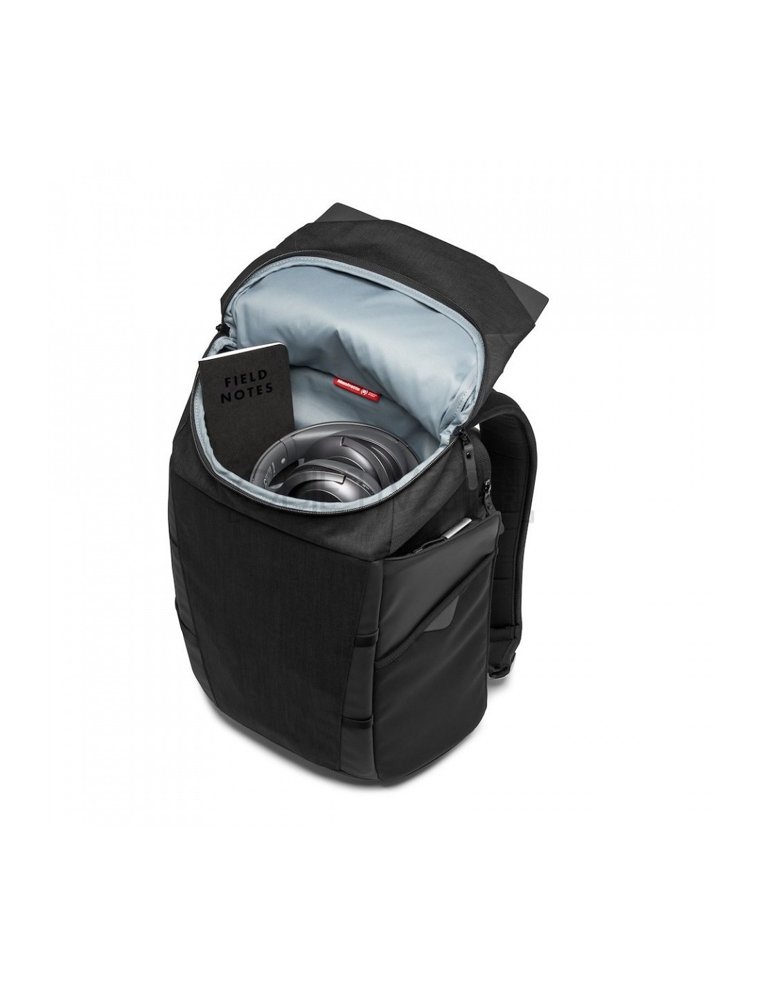 Las mochila fotográfica Manfrotto Chicago Small puede alojar una cámara mirrorless premium y 2-3 objetivos más, dependiendo del tamaño. Posee un compartimiento superior diseñado para transportar objetos personales. También pueden alojar un DJI OSMO Mobile en su bolsillo específico para gimbal en una de las tapas laterales. Su compartimiento para ordenador portátil separado, situado en la parte trasera del compartimiento principal, puede almacenar un portátil de 14’’.