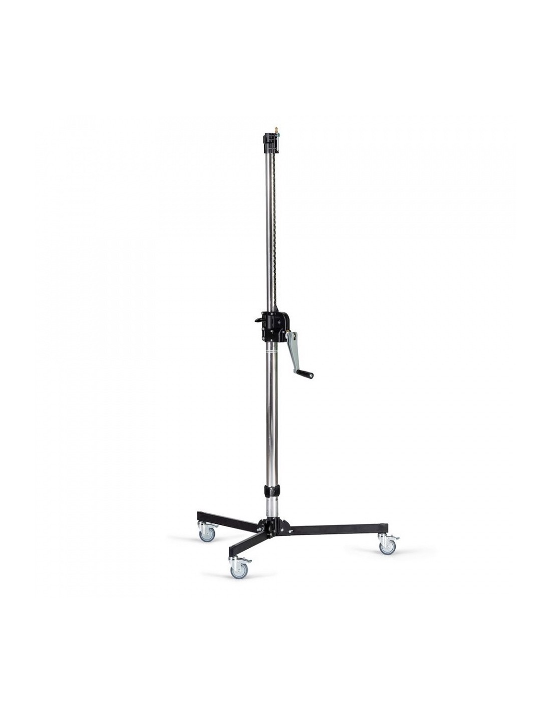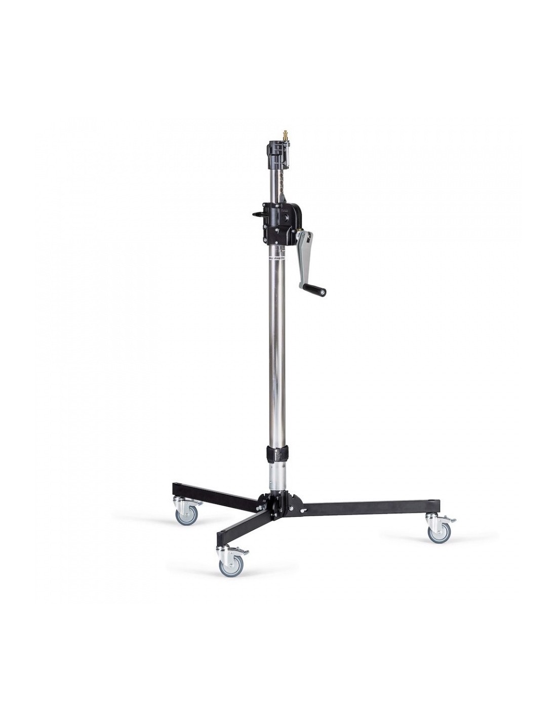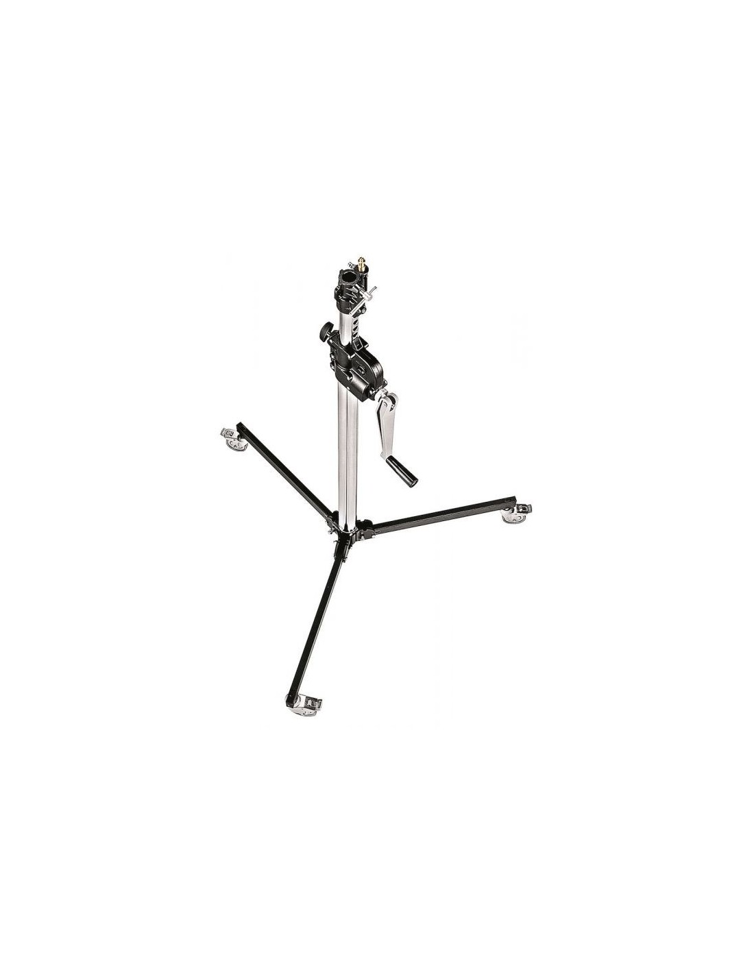 El Pie de estudio con base baja Wind Up en 2 secciones fabricado en acero por Manfrotto, es un pie de estudio que soporta cargas de hasta 35 kg.