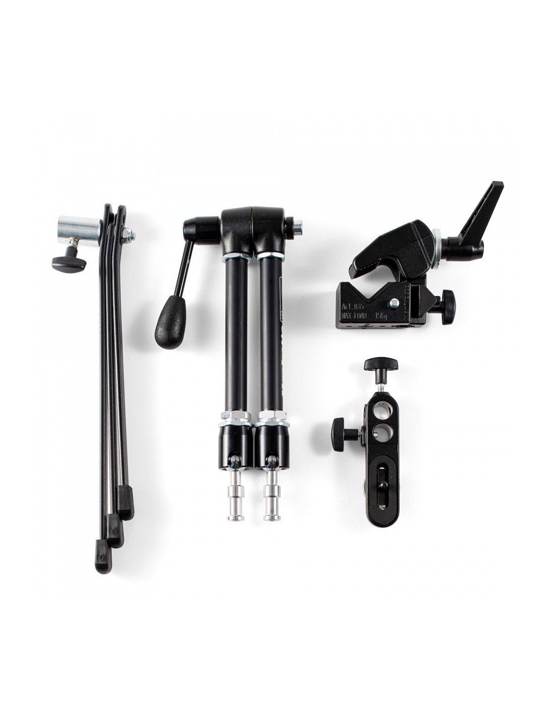 Este Kit de brazo mágico fabricado en aluminio con palanca de bloqueo y Súper pinza es una pieza esencial en cualquier equipo fotográfico profesional.
