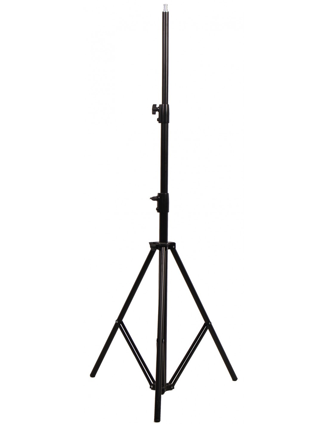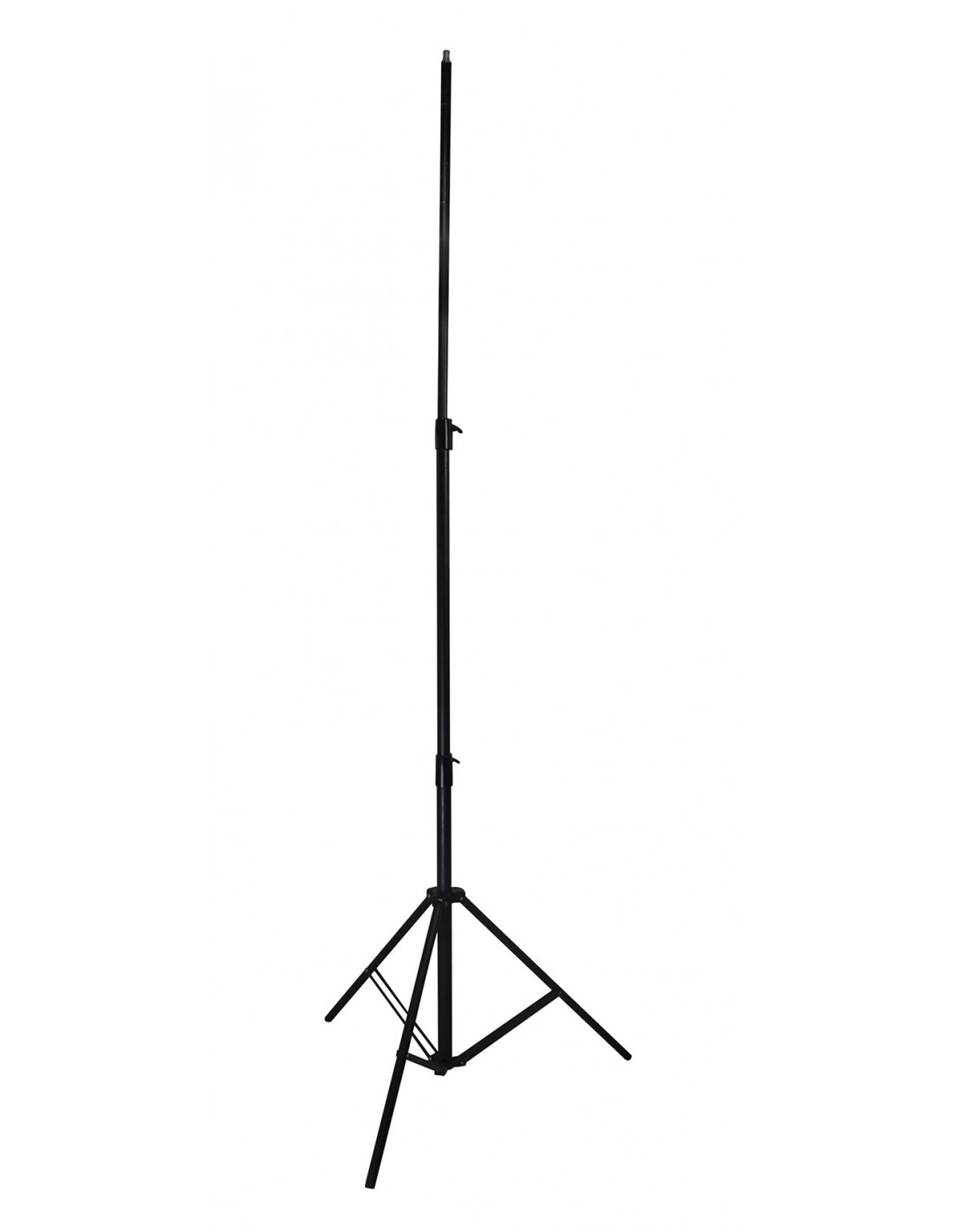 Pie de estudio profesional para soporte de equipos de iluminación fabricado en aluminio y acero.