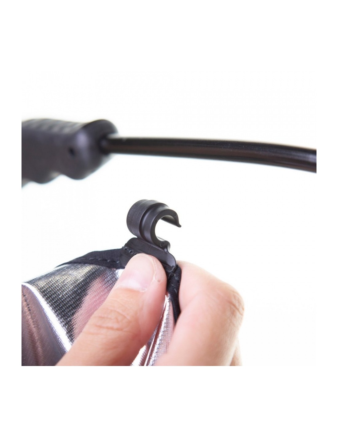 El Marco de construcción RapidExoframe ™ de diseño inteligente se divide en pequeñas secciones y se empaqueta para transportar en su propio estuche, con un peso de menos de 500 gramos, gracias a un mosquetón de alta calidad podrás transportar el Halo Compact enganchado a cualquier asa o trabilla.