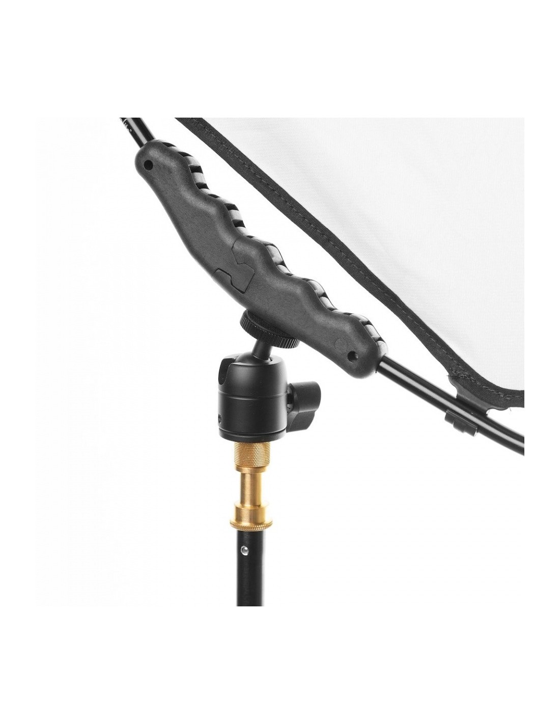 También podemos apreciar enormemente que el Difusor Halo Compact cuenta con una empuñadura para poder sujetarlo fácil y cómodamente con una sola mano; pero esta empuñadura no solo sirve como asa de sujeción manual, si no que también posee un orificio de rosca de 1/4 “, que permite el montaje en diferentes sistemas de soporte.