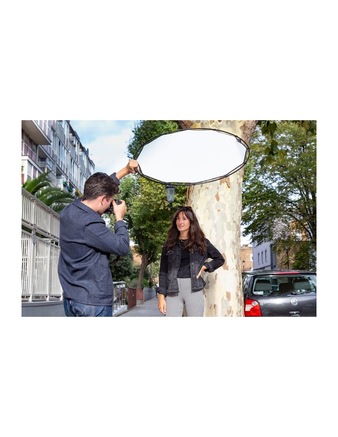 El Difusor Halo Compact de 82 cm Blanco 2 Stop de Manfrotto, es un sistema de difusión de la luz portátil y plegable pensado para que su uso diario sea sencillo y cómodo.