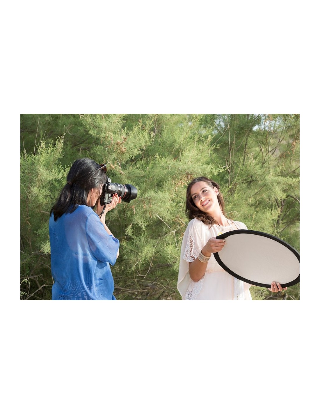 El Reflector circular de 50 cm es un accesorio de iluminación ideal para fotografía en localización exterior para retrato o para fotografía de productos pequeños y medianos.