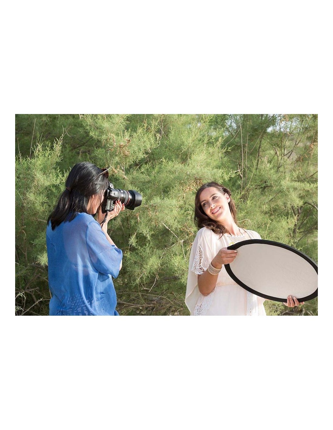 El Reflector circular de 50 cm es un accesorio de iluminación ideal para fotografía en localización exterior para retrato o para fotografía de productos pequeños y medianos.