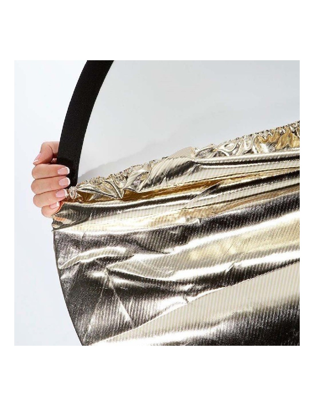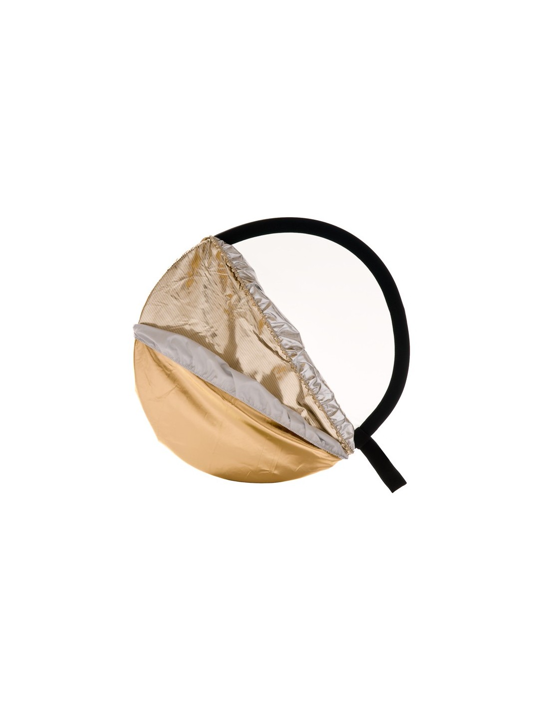 El Reflector Bottletop 5:1 50 cm Traslucido/ Sunfire/ Plata/ Oro/ Blanco de Manfrotto, es un reflector redondo plegable, con un sistema de fundas con borde elástico que se colocan en segundos sobre el difusor translucido de base, transformándolo en un reflector, ideal para fotografía en localización exterior y para retrato, también para pequeños escenarios.