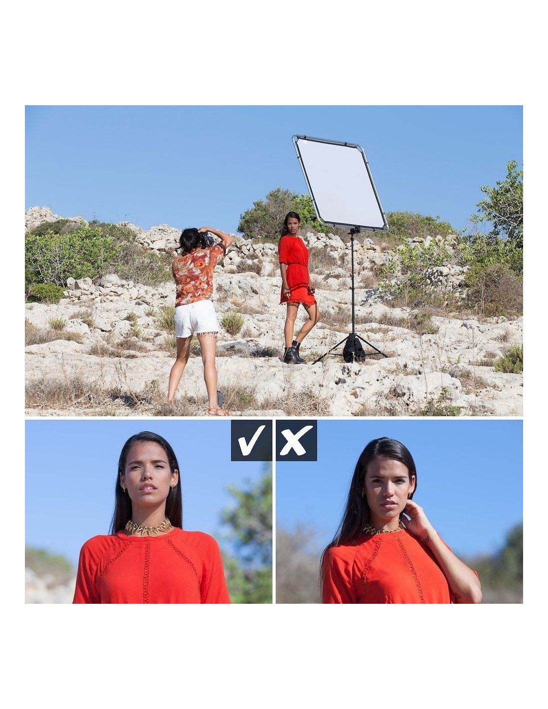 2. Panel reflector. Para usuarios más avanzados o de uso profesional. Son paneles reversibles con soporte que gira 360 grados para usar en horizontal y vertical.