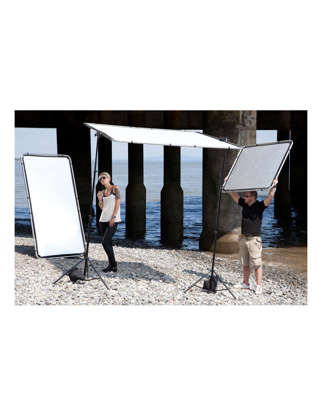 La cubierta reflectora Skylite está compuesta por dos caras una Blanca que refleja la luz ambiente y suaviza las sombras, creando volúmenes de transición suave. La otra cara es Dorada, y ayuda reflejar la luz acentuando los tonos cálidos y dorados, creando tonos más cálidos semejantes al atardecer.