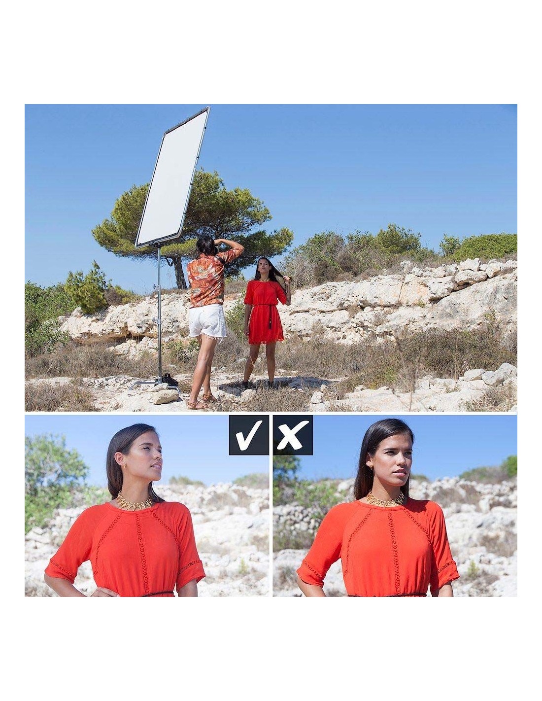 2. Panel reflector. Para usuarios más avanzados o de uso profesional. Son paneles reversibles con soporte que gira 360 grados para usar en horizontal y vertical.