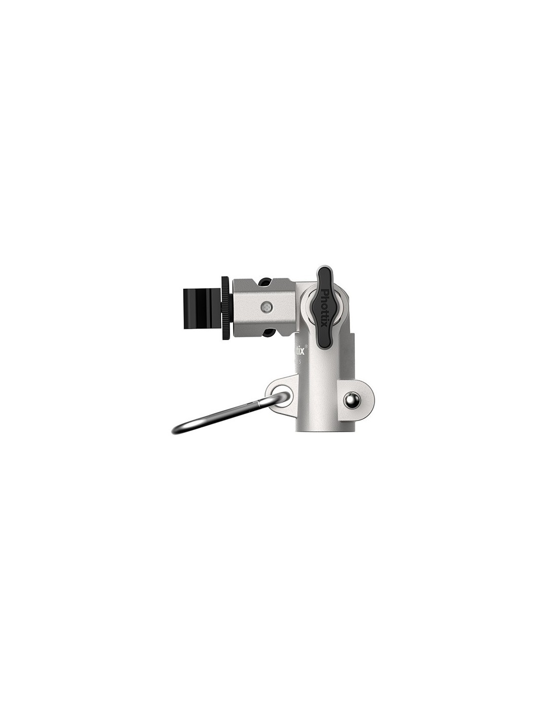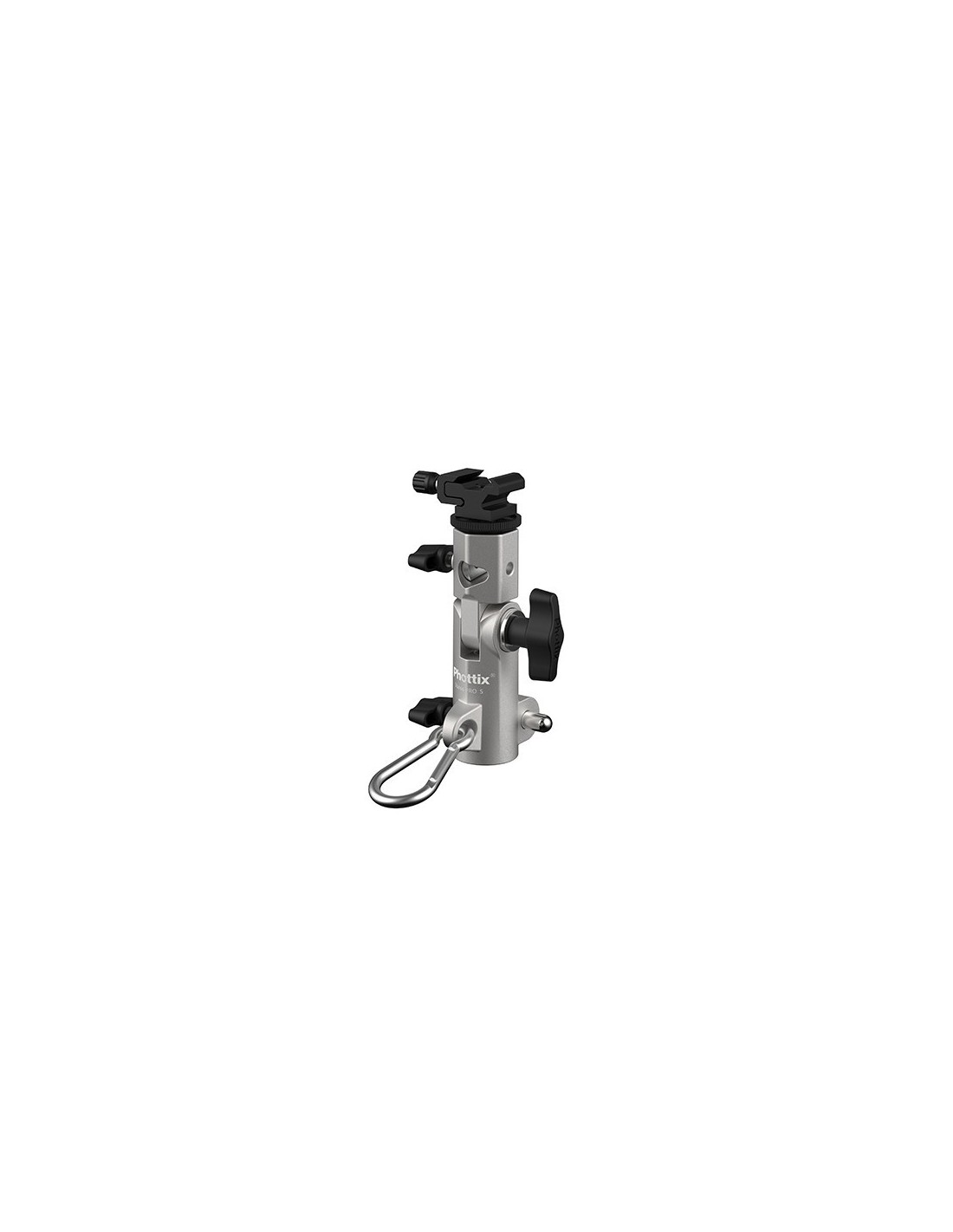 La Rótula Paraguas Varos S 25 kg de Phottix en un soporte diseñado para que el profesional pueda montar sobre su soporte de suelo un Flash de zapata y un Paraguas.