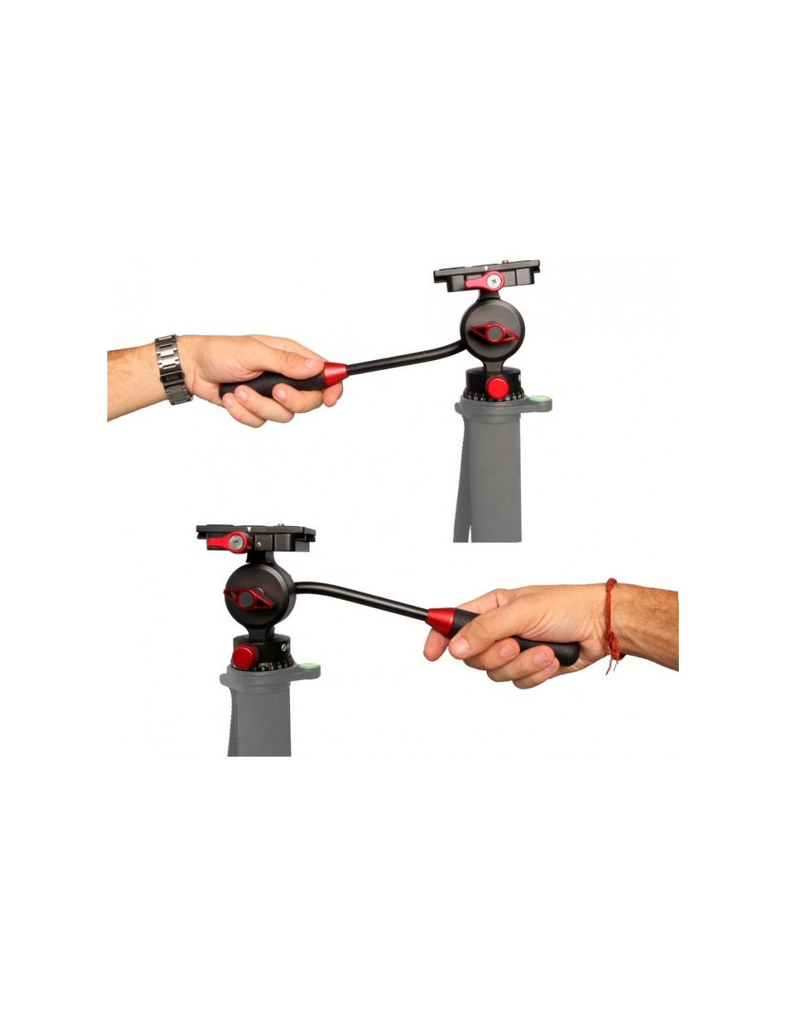 Equipada con una inclinación de -60/+90° y un giro de 360°, esta cabeza integra una asombrosa fluidez.