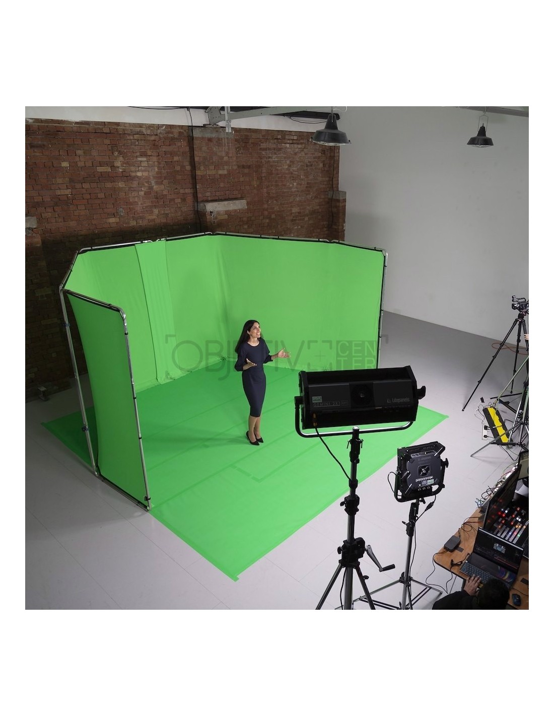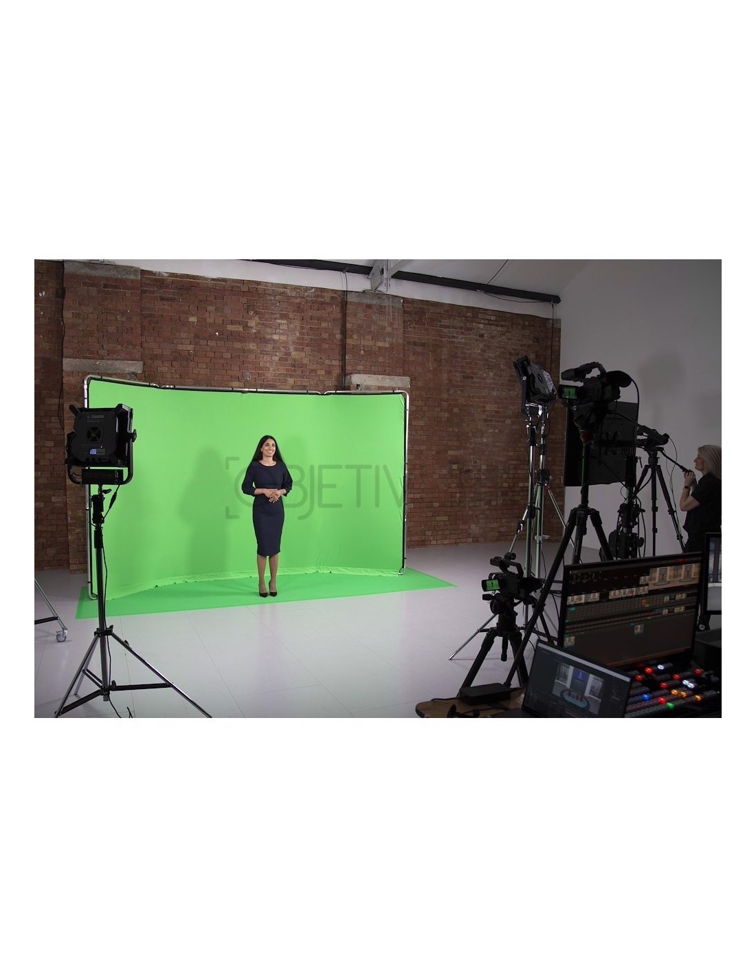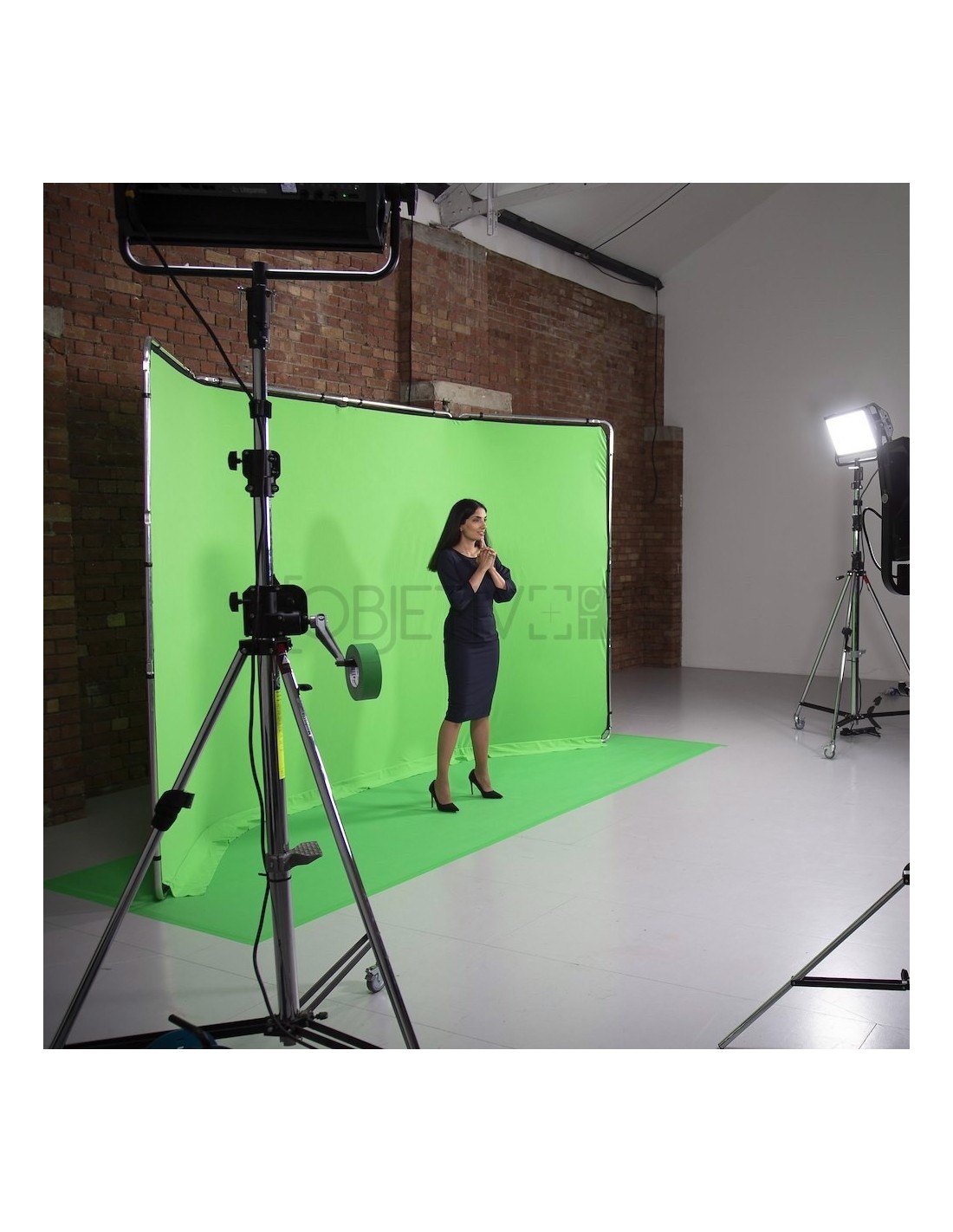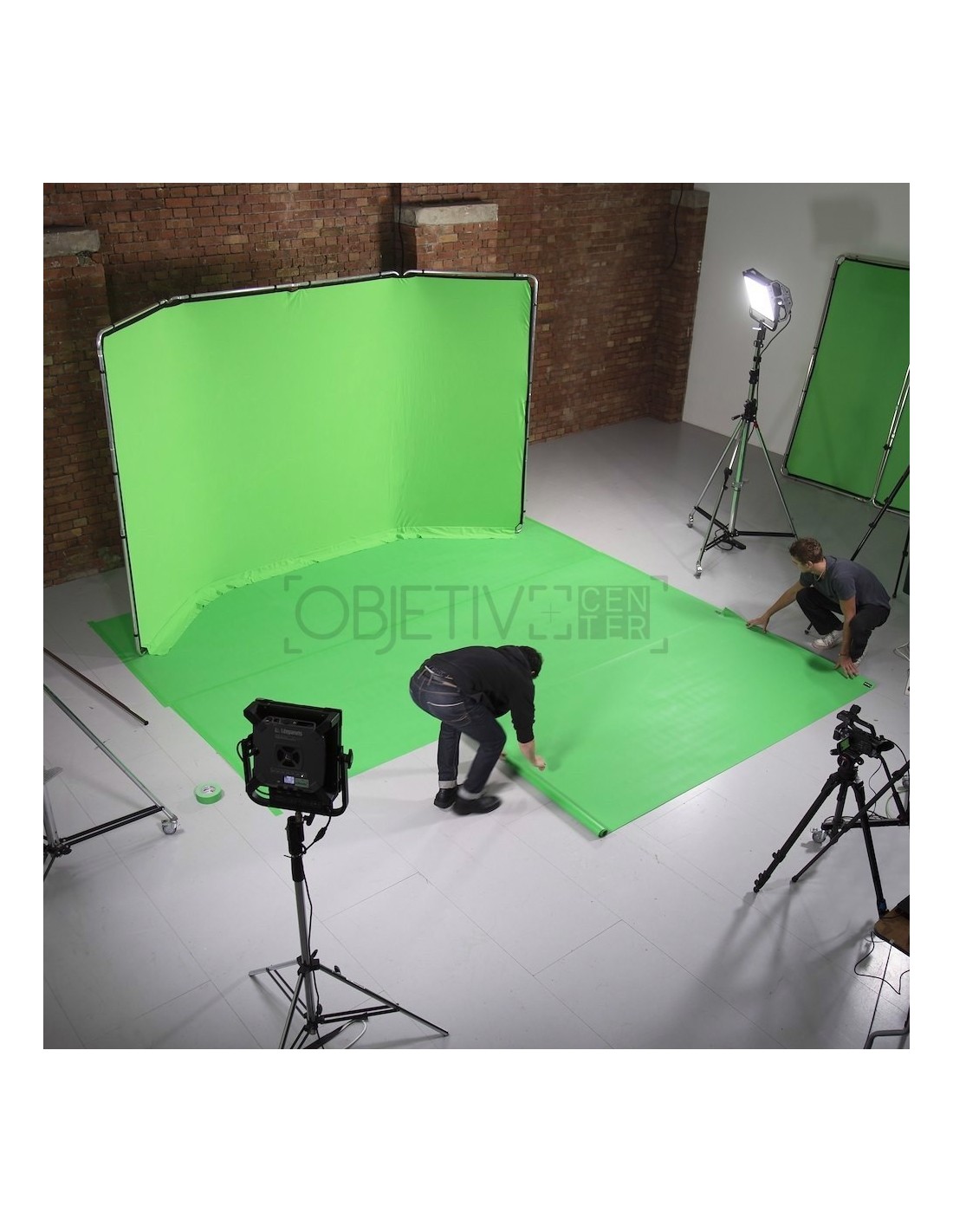La banda para suelo de vinilo de 1,37 m x 4 m Croma Key Verde es un suelo modular creado para combinarse a la perfección con las principales soluciones de fondo verde Chroma Key de Manfrotto, como los fondos Panoramic, Chroma Key FX y Studio Link.