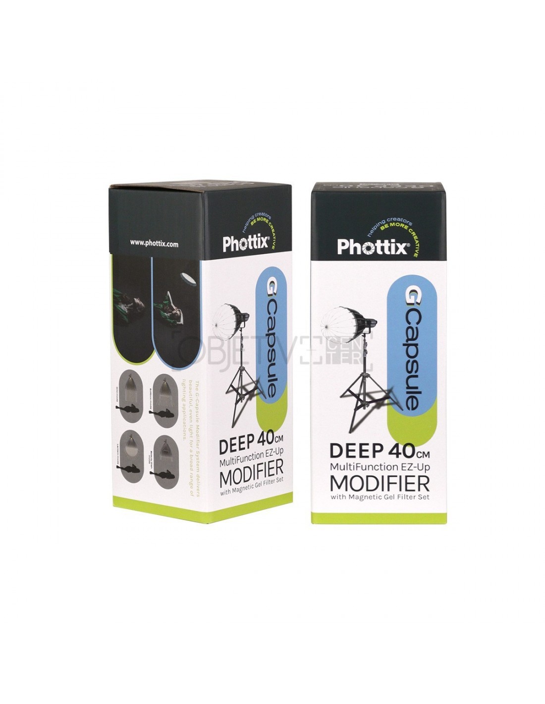 La innovadora G-Capsule combina una caja de luz con un paraguas pasante, ofreciendo infinitas posibilidades. Puede usarse como una caja de luz tradicional con la rejilla incluida, como un beauty dish o como una linterna de luz suave para una iluminación omnidireccional. El sistema también incluye un juego de soportes de gel magnético de 4 colores, lo que aumenta aún más su versatilidad.