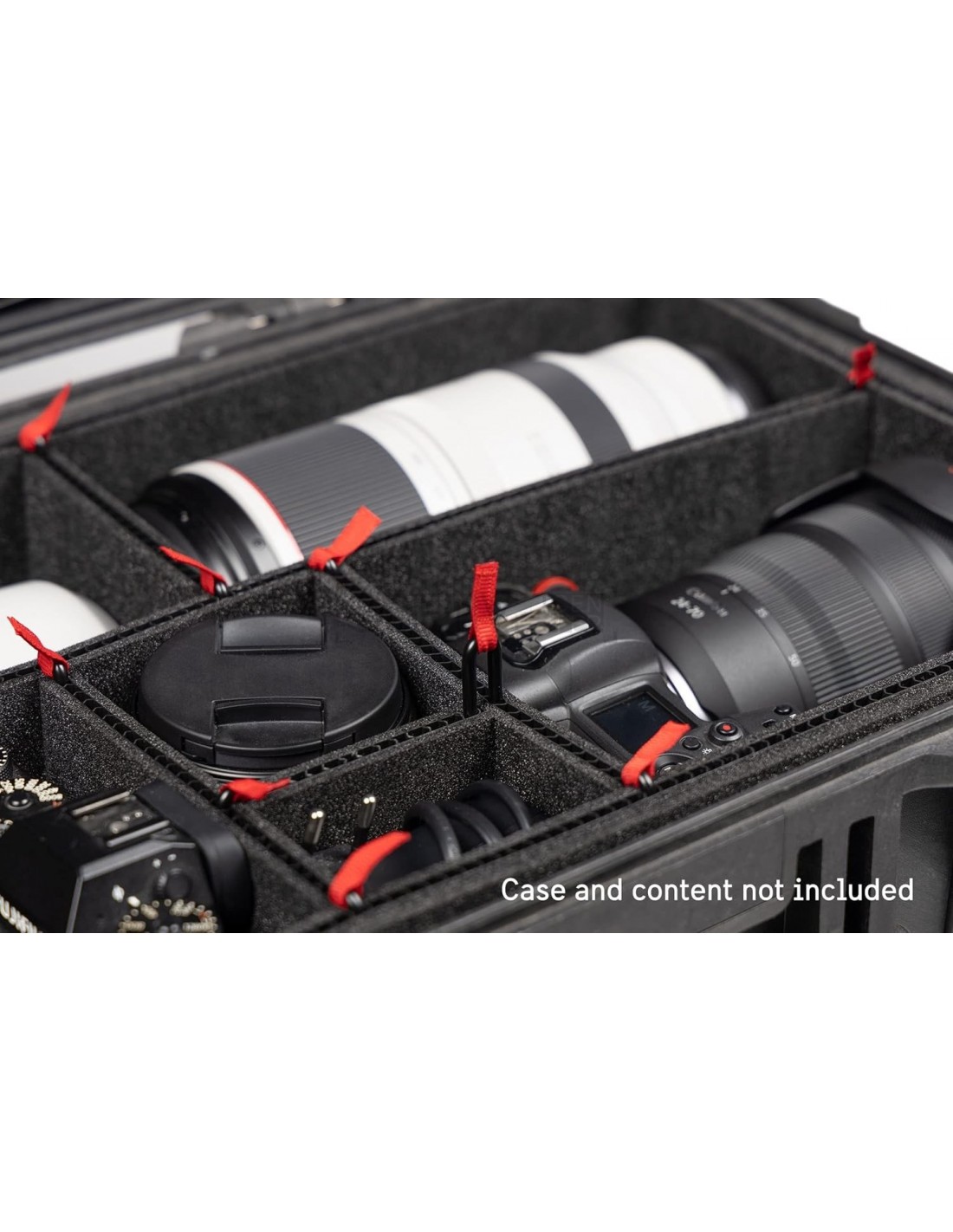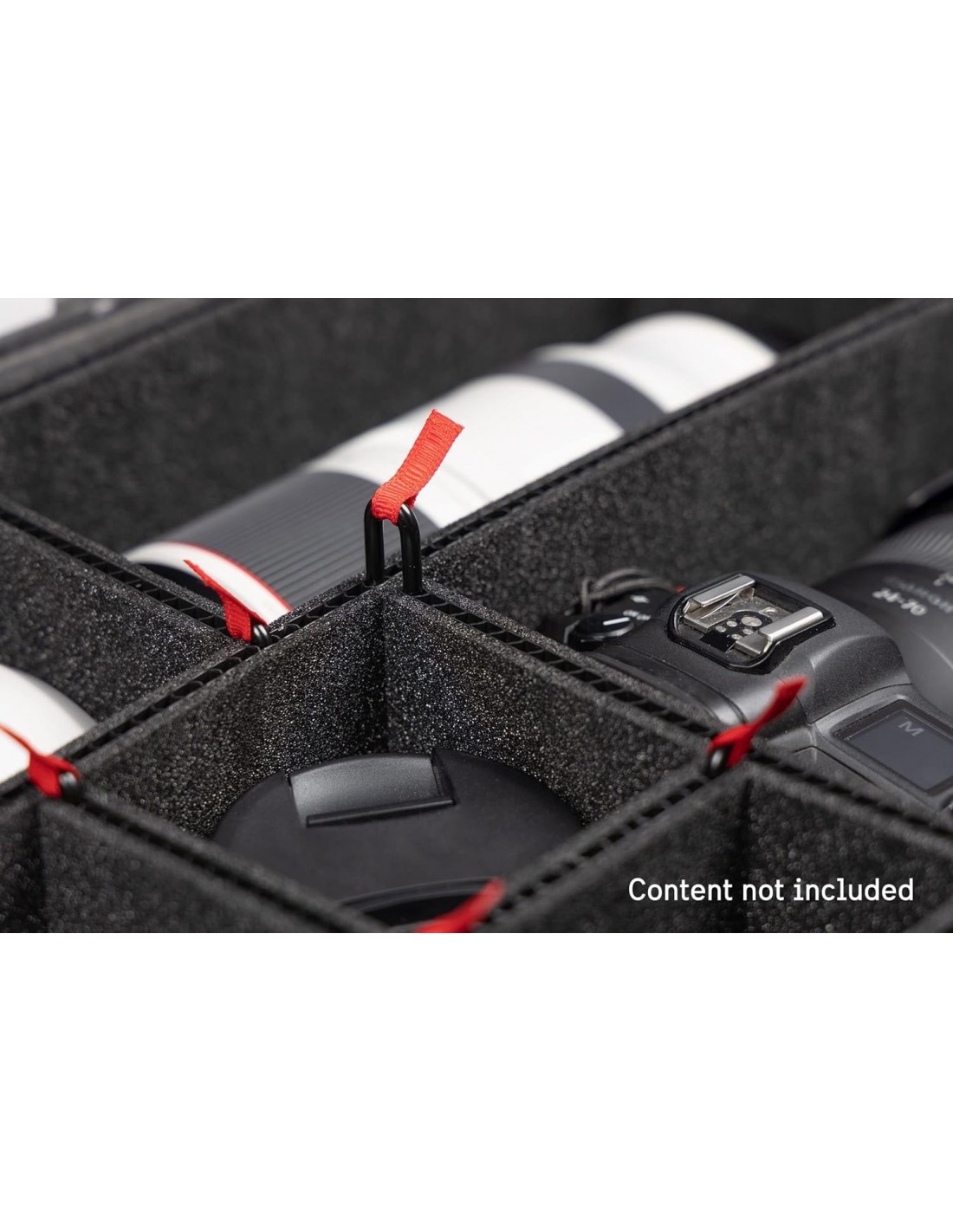 Este kit incluye paneles divisores sin cortar que puedes cortar en piezas más pequeñas (con la herramienta de corte TrekPak) para adaptarlas al equipo que quieres guardar en la maleta.