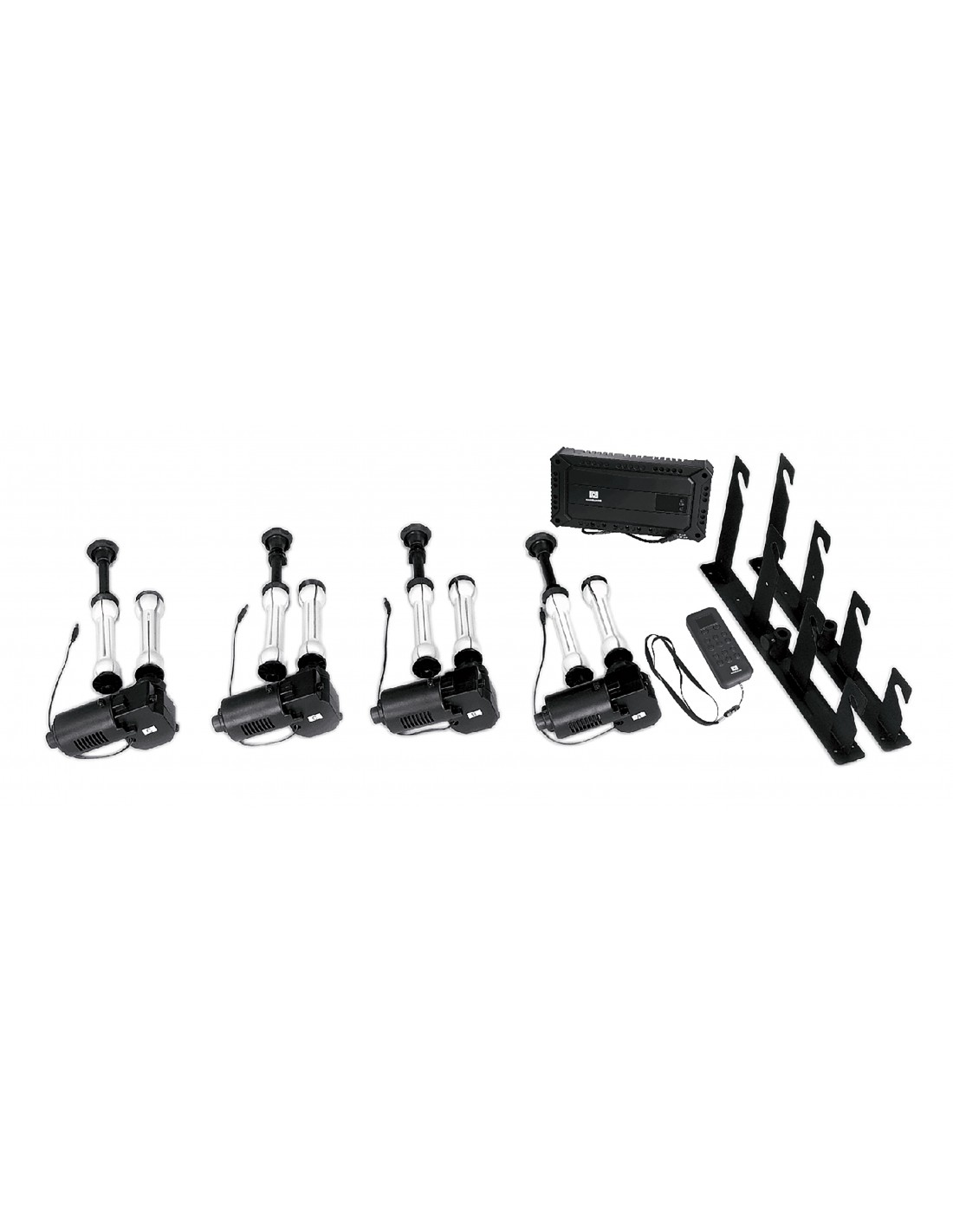 Juego de 4 mecanismos de expansión motorizados para fondos de papel, con soporte de pared, caja de control y mando a distancia.