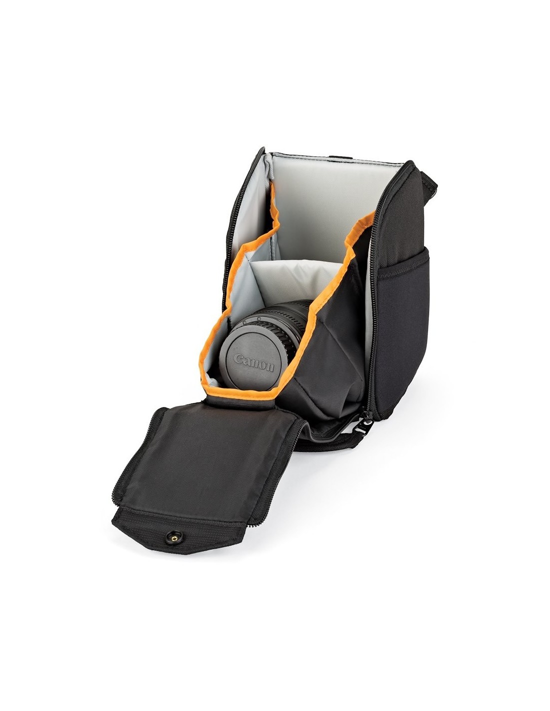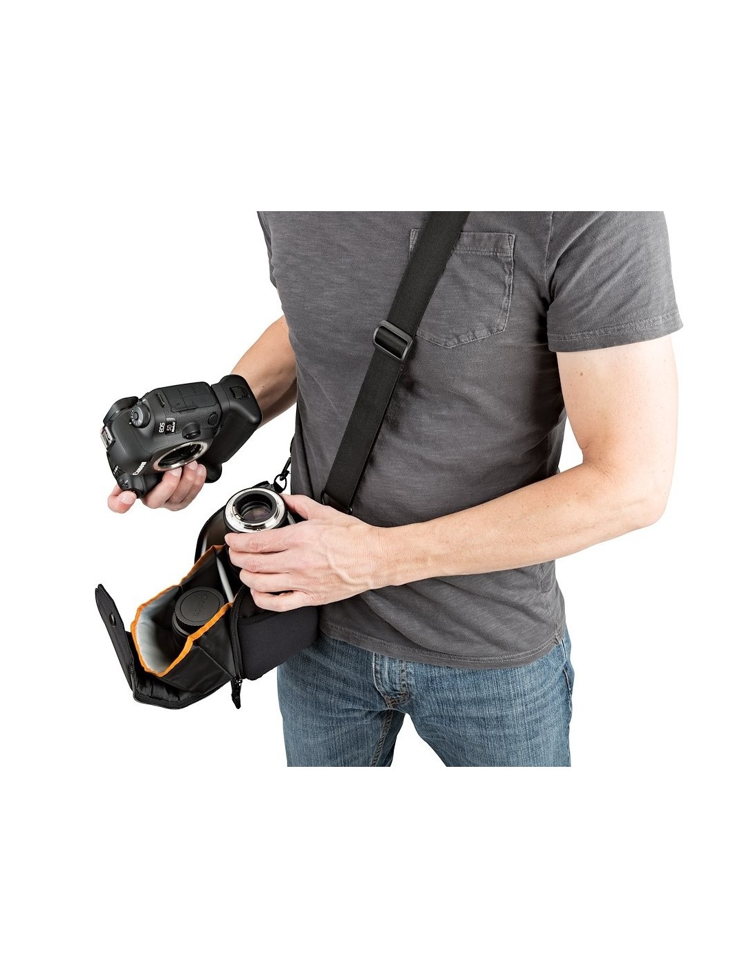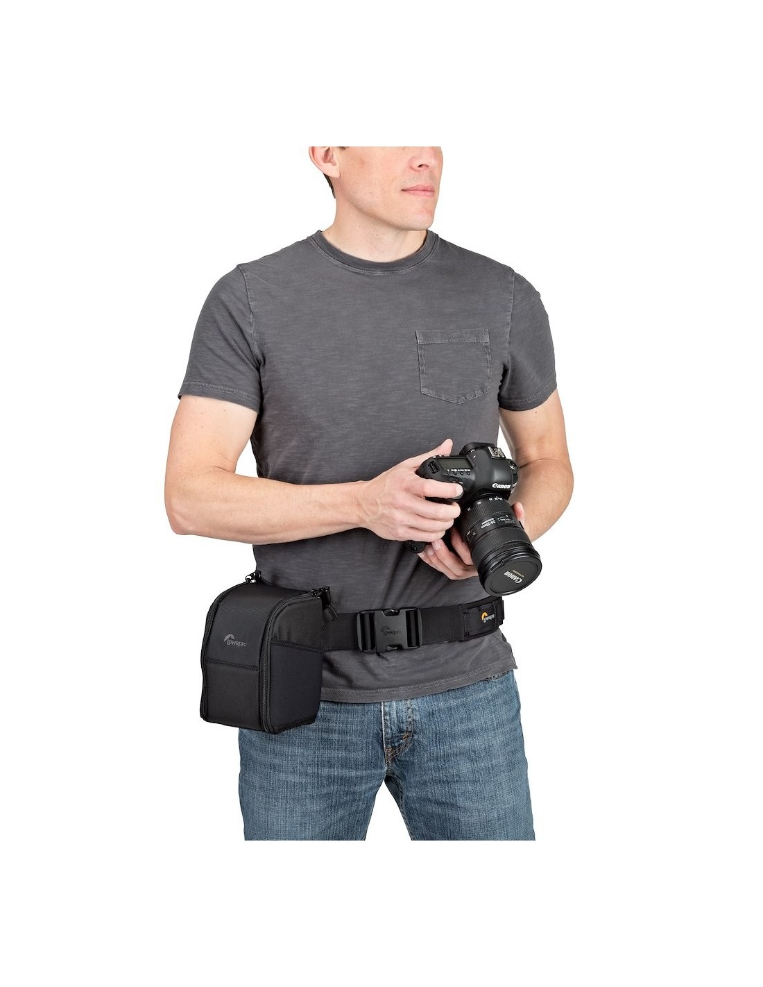 Estuche que permite cambiar de objetivo con una sola mano, con enganche compatible SlipLock. Resiste cualquier clima.