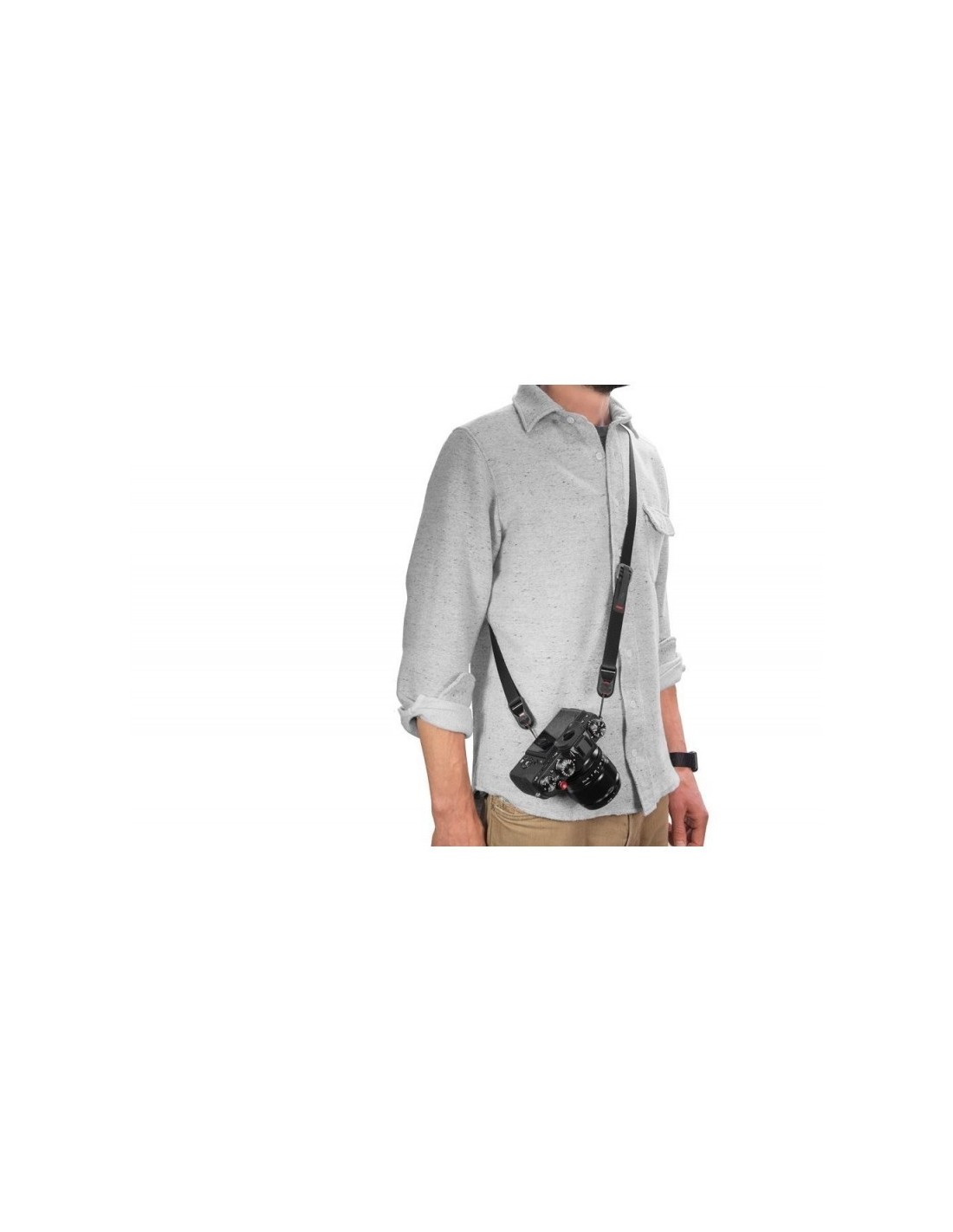 Los ajustadores rápidos exclusivos de aluminio / Hypalon permiten el ajuste con 1 dedo. Acorte la correa para un transporte estable durante la actividad física. Alargue para acceder a su cámara para realizar tomas activas.