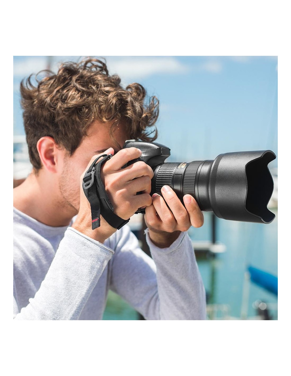 Sujete su mano para una seguridad total o tire para aflojar cuando acceda a los controles de la cámara.