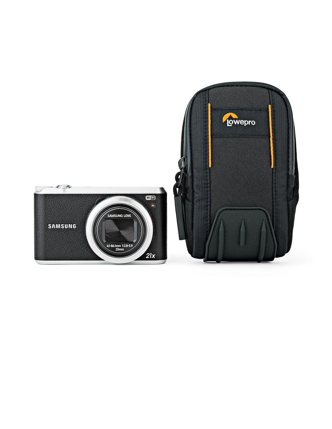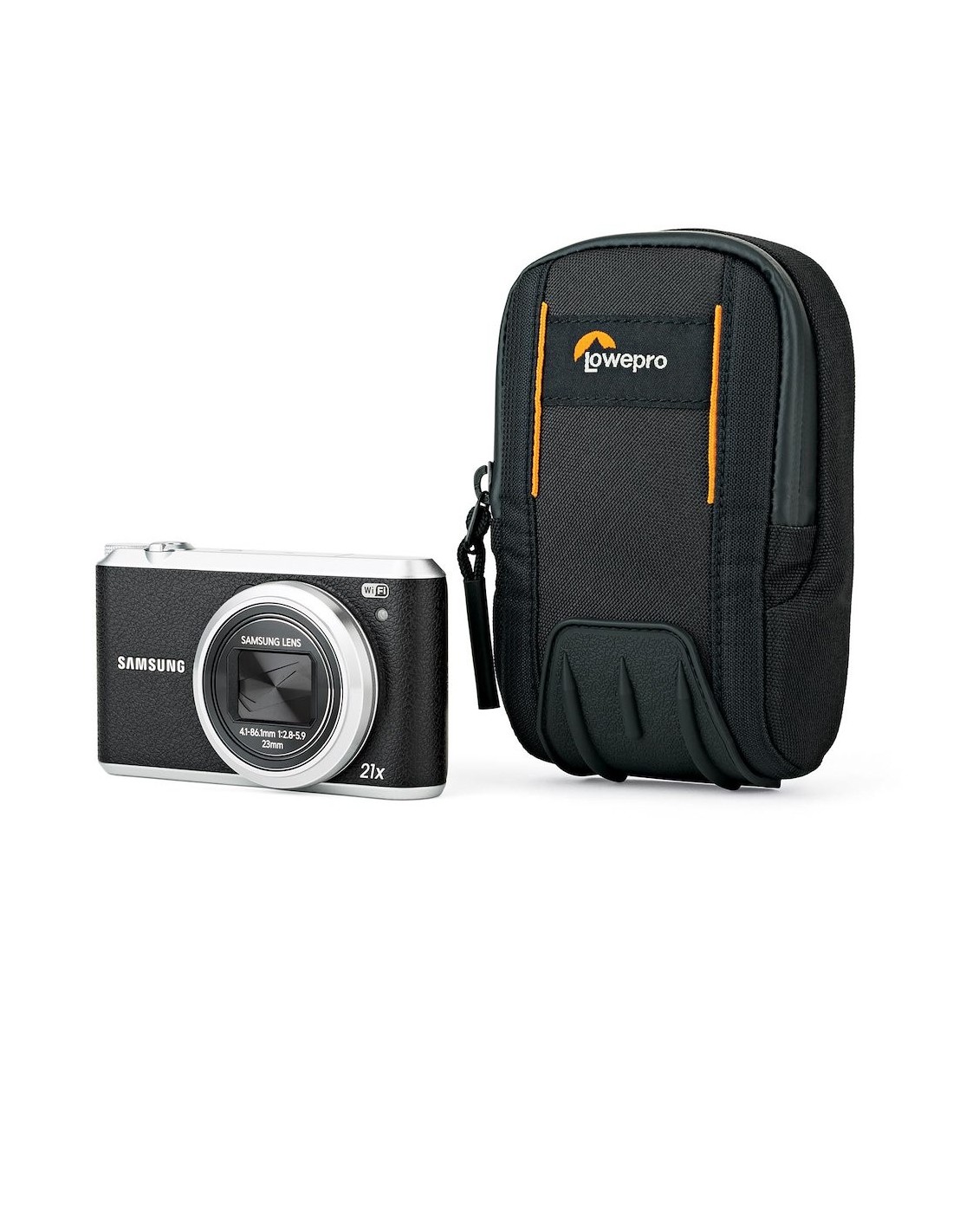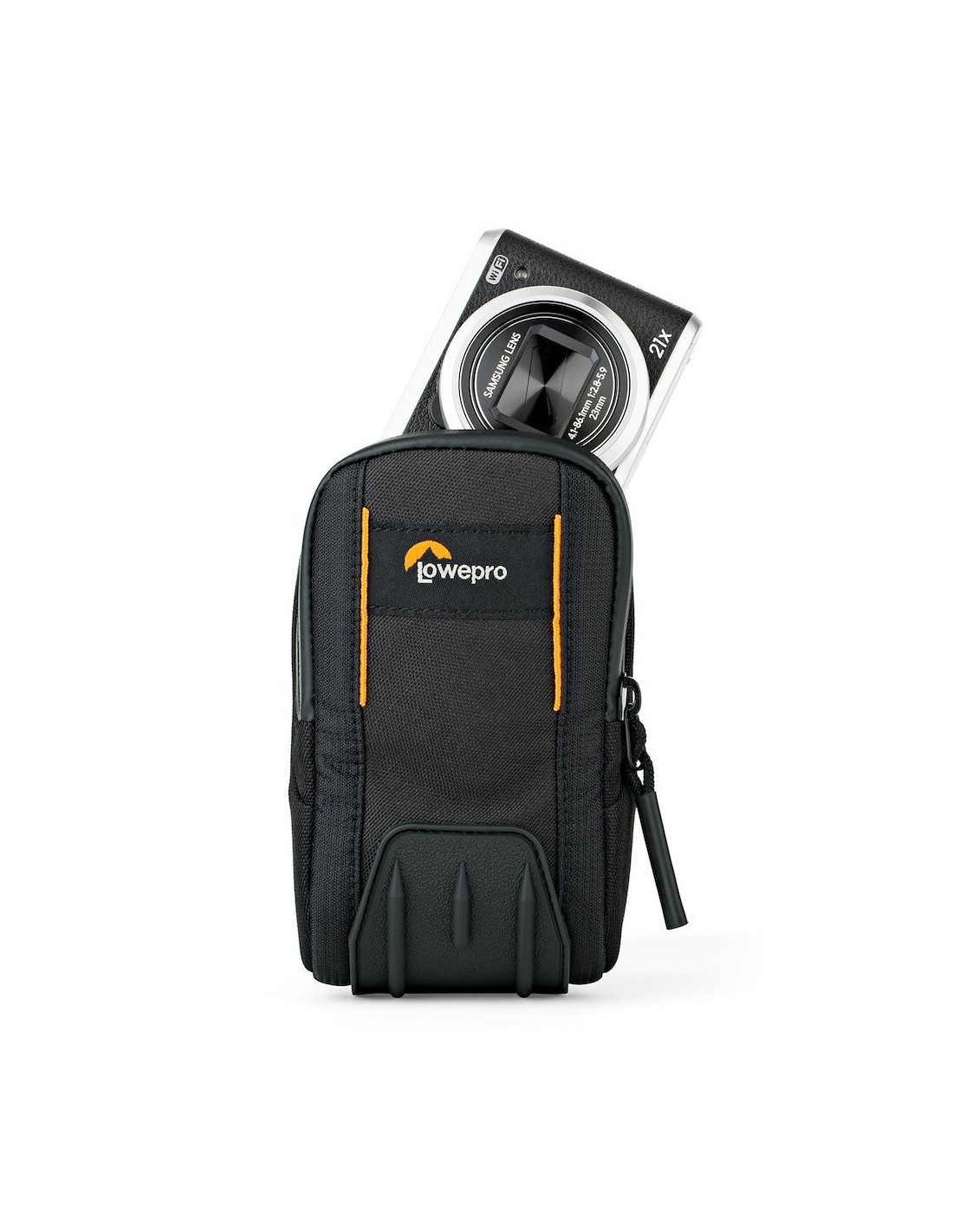El estuche para camara compacta Adventura CS20 de Lowerpro con bolsillo superior de fácil acceso a la cámara en el compartimiento principal mediante cremallera simple.